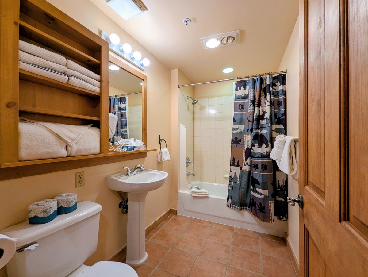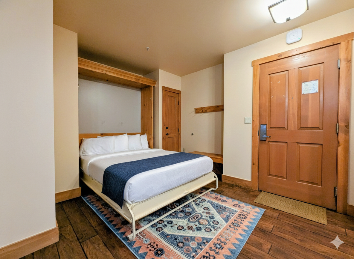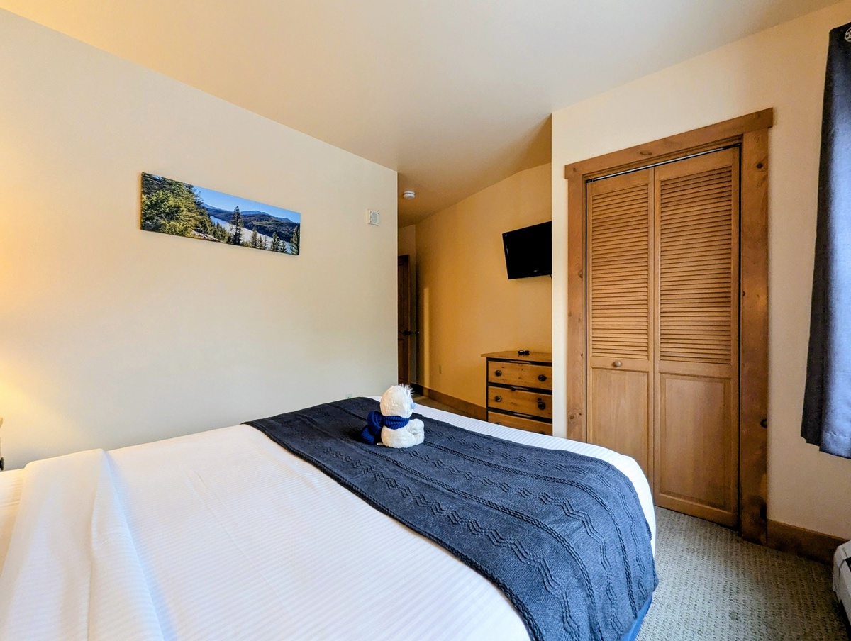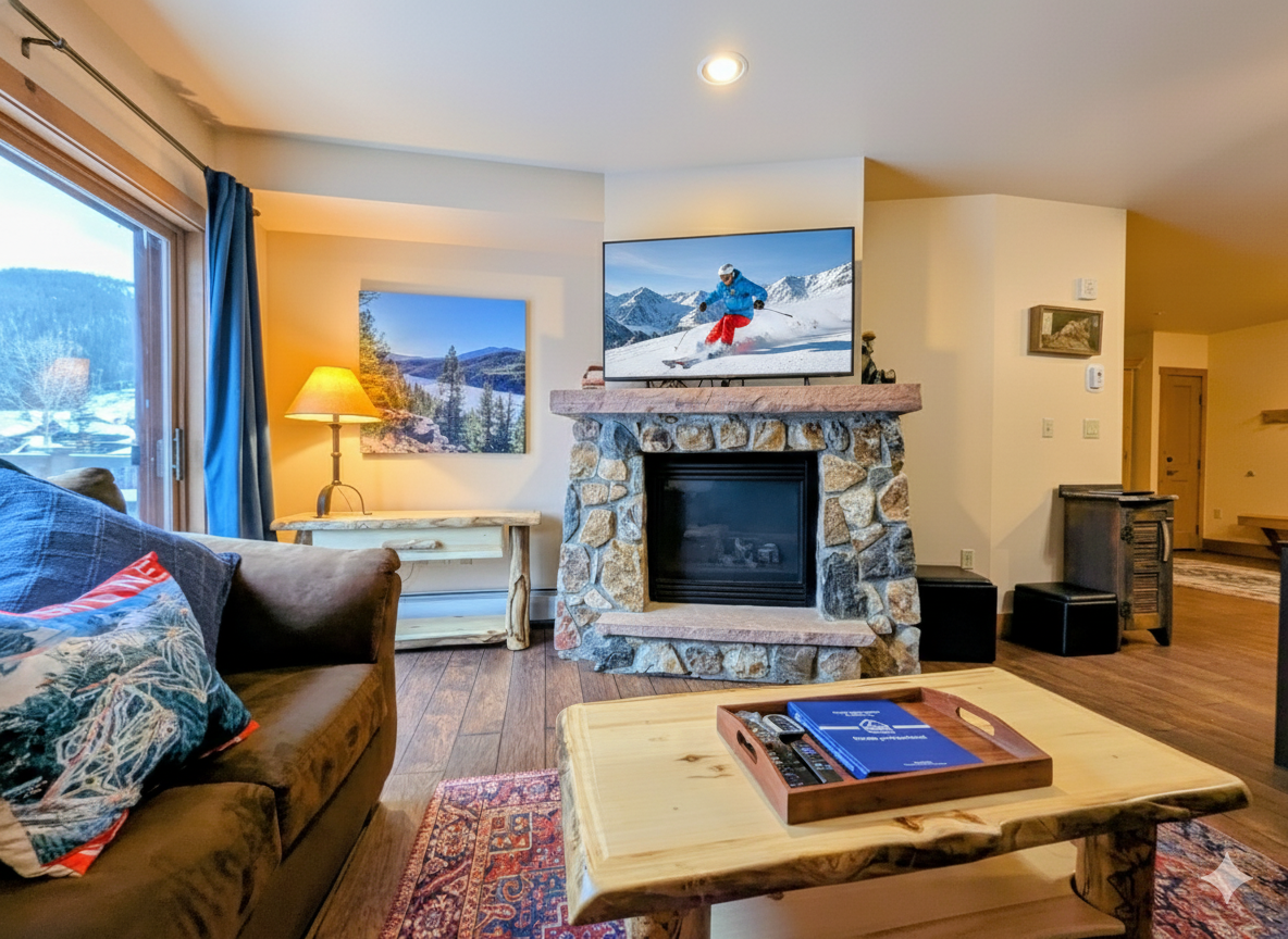 After a long day of hitting the slopes or a great bike ride up the pass, you will enjoy kicking back in here. With a nice flat screen above the fireplace, no place is cozier. The couch pulls out into a sleeper sofa and you will find a Murphy bed at the other end of the room.