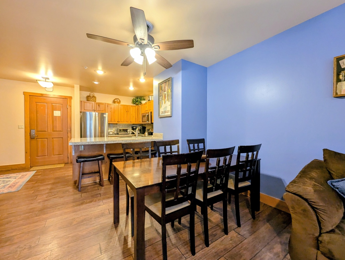 This condominium has a full size dining table that comfortably seats 6, its a great place to bring the group together for a home cooked meal.