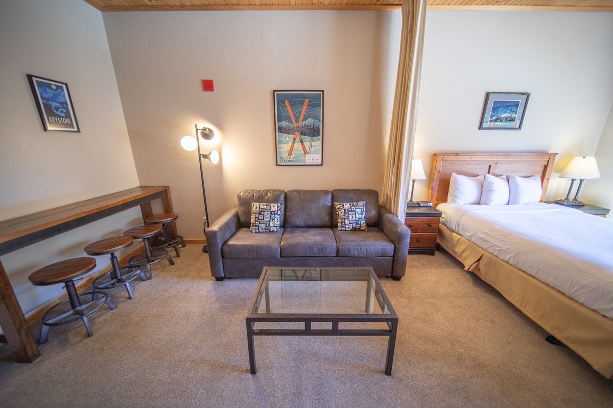 Located near Keystone's Mountain House, this cozy studio provides the ideal retreat for your mountain getaway. Upon entering, you'll immediately feel the inviting ambiance that sets the stage for your alpine adventure. The spacious and well-designed room offers an ideal space to relax after a day of exploration.