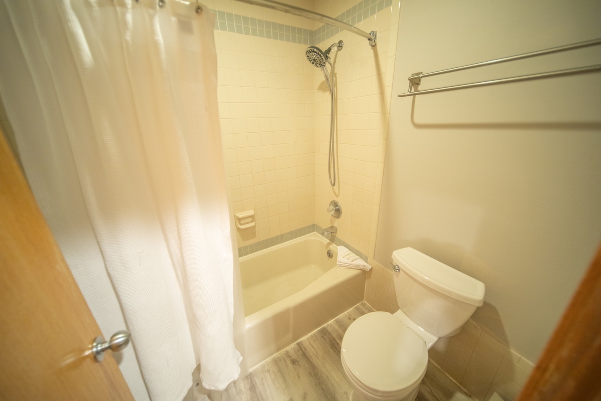 The bathroom showcases modern style and functionality, equipped with all essential amenities to ensure your comfort throughout your stay. The condo's well-planned layout optimizes space, delivering a comfortable living experience without compromising on convenience.