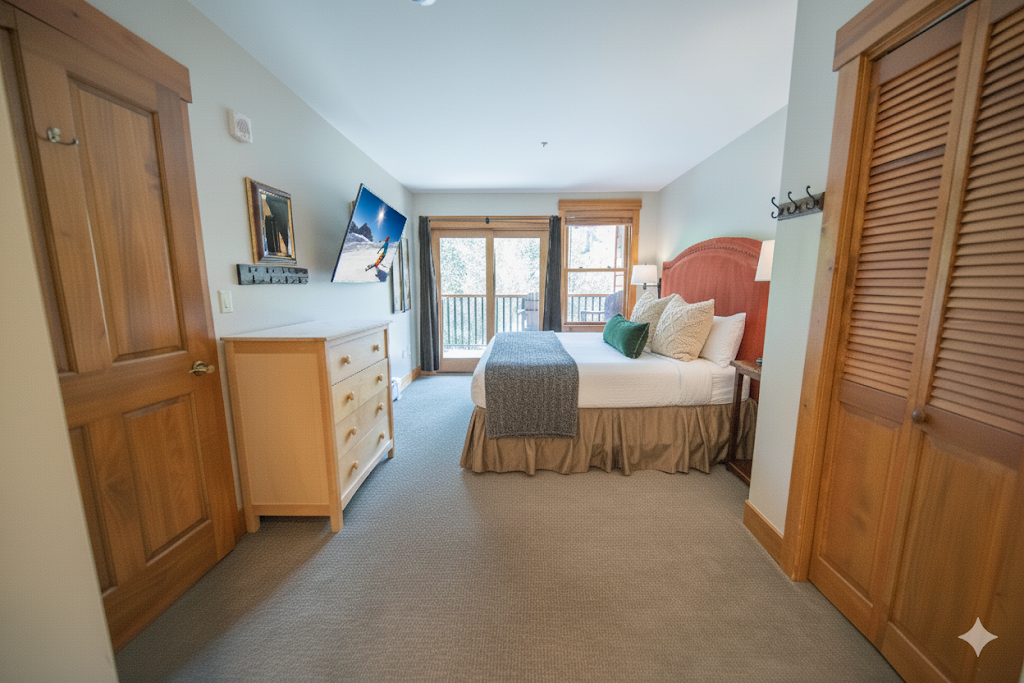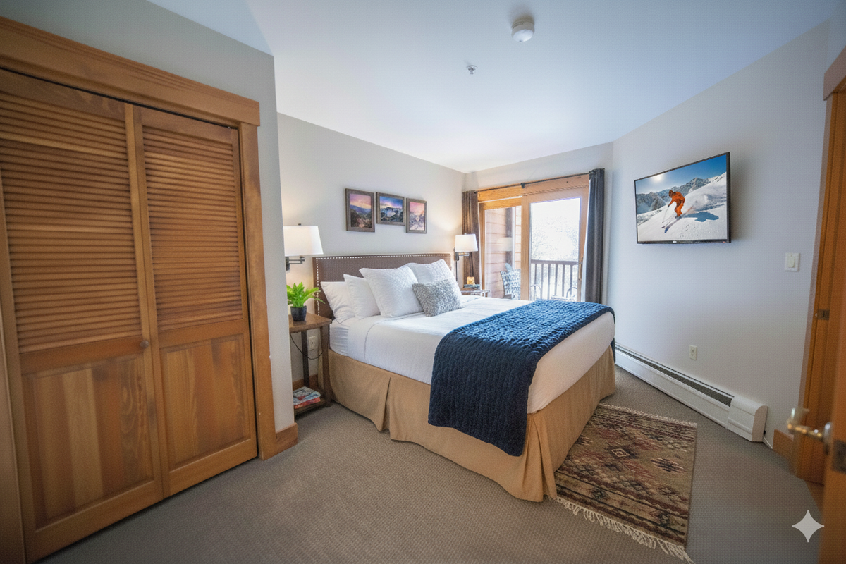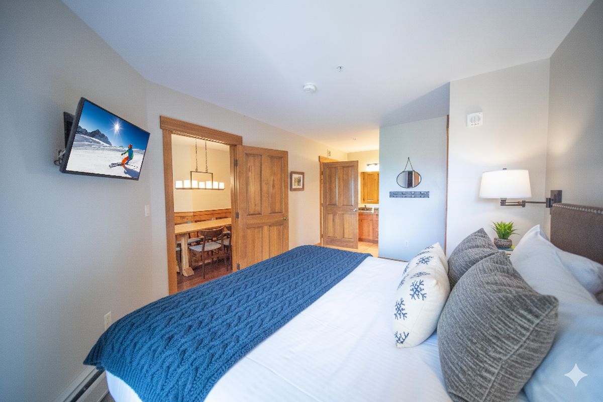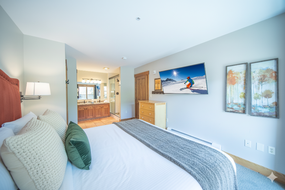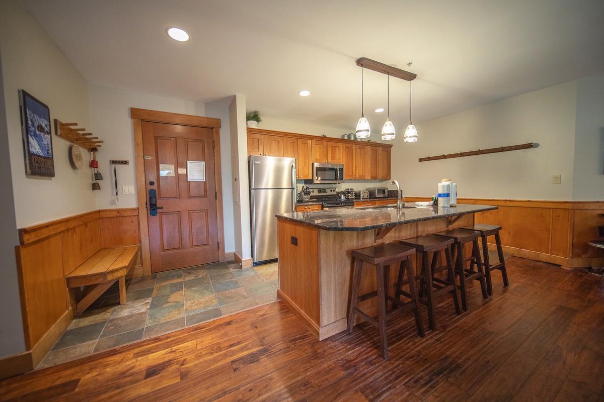The condo complex itself provides an array of resort-style amenities for your enjoyment. After a day on the slopes, soothe your muscles in the communal hot tub, or share stories of your mountain escapades by the communal fire pit. Younger guests will be entertained with a play room, and the fitness center is perfect for those looking to maintain their workout routine.