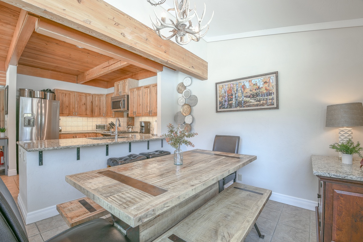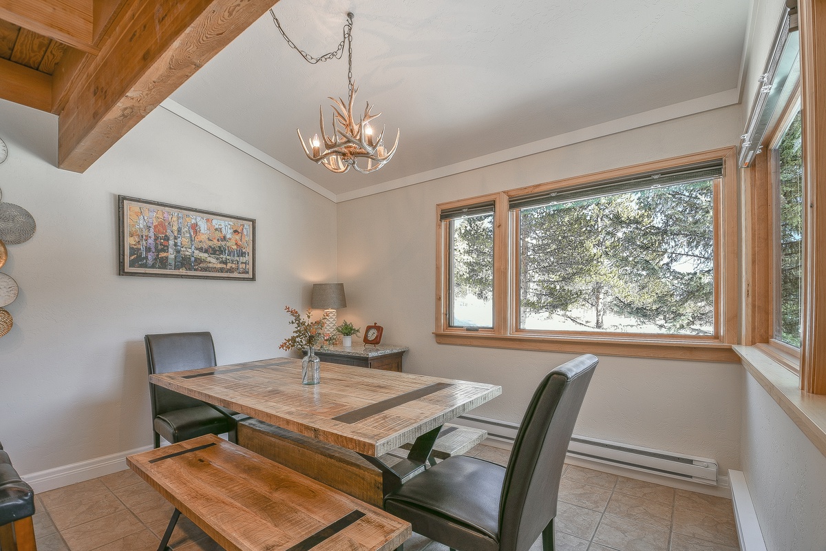 The updated kitchen has everything you need, from stainless steel appliances to ample counter space. Gather around the dining table for home-cooked meals or enjoy a hearty breakfast before hitting the slopes or trails.