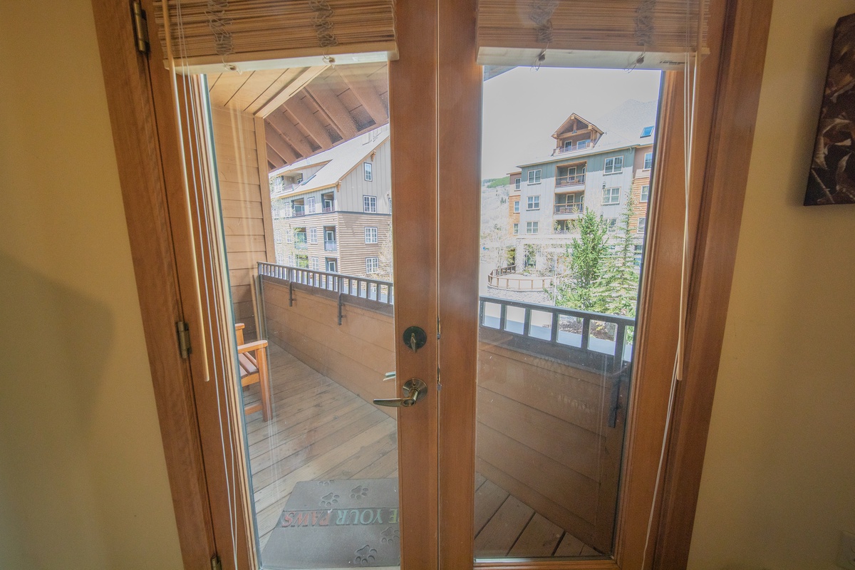 The open living area seamlessly blends with the dining and kitchen areas, providing a warm and inviting atmosphere for guests to relax and socialize. The living room features a comfortable lounge area that is perfect for curling up in front of the fireplace while watching a movie on the flat-screen TV. There is a great deck off the living room that overlooks a quaint courtyard for you to enjoy your morning coffee or unwind at the end of the day.