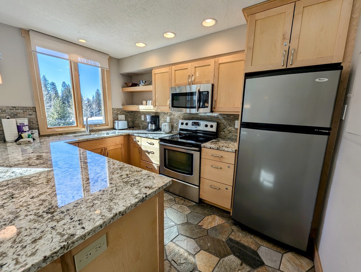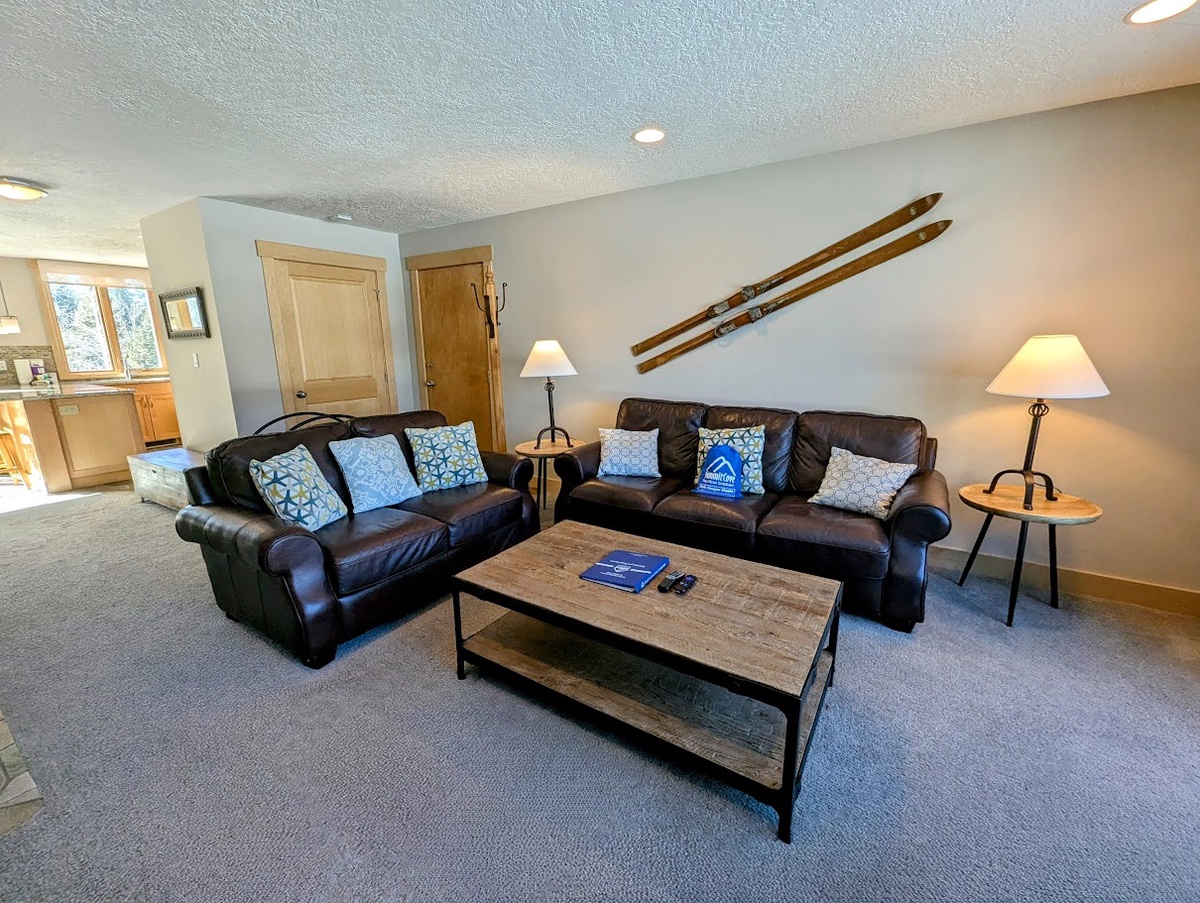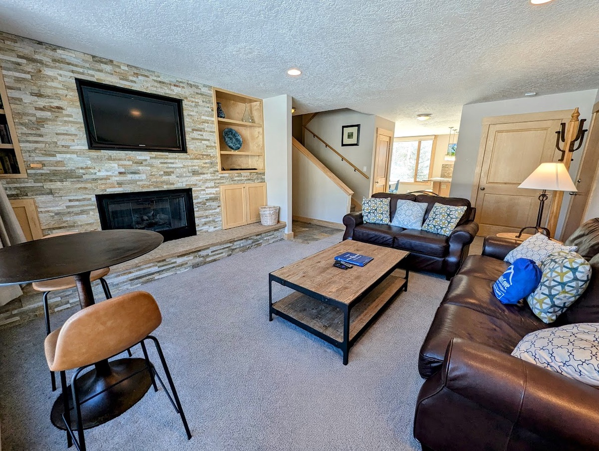 Modern Comfort and Cozy Atmosphere: Inside, the condo radiates warmth and comfort with a gas fireplace, private balcony, and ample space for your group to relax after a day of outdoor adventures. The bedrooms are upstairs, offering peace and quiet when needed.