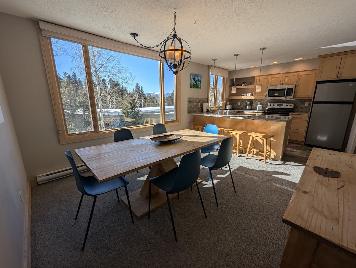 Kitchen and Dining Area: The well-appointed kitchen is equipped with everything you need to prepare delicious meals, whether it's a hearty breakfast before hitting the slopes or a gourmet dinner with loved ones. The dining area features a spacious table, perfect for enjoying meals or playing board games together.