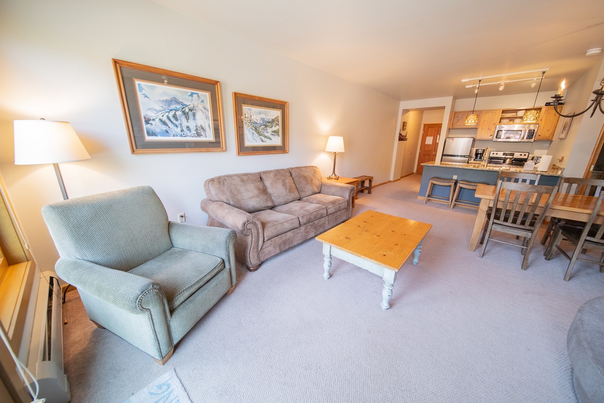 During the summer months, the surrounding area comes alive with an array of outdoor activities. Hike through the enchanting trails, bike along the scenic paths, or indulge in a round of golf on the nearby championship courses. River Run Village also offers a vibrant atmosphere with a variety of restaurants, bars, and shops to explore, ensuring that there is never a dull moment. This condo also has one of the best views of the main stage during Keystone's summer festivals. Watch the entertainment right from your own balcony!