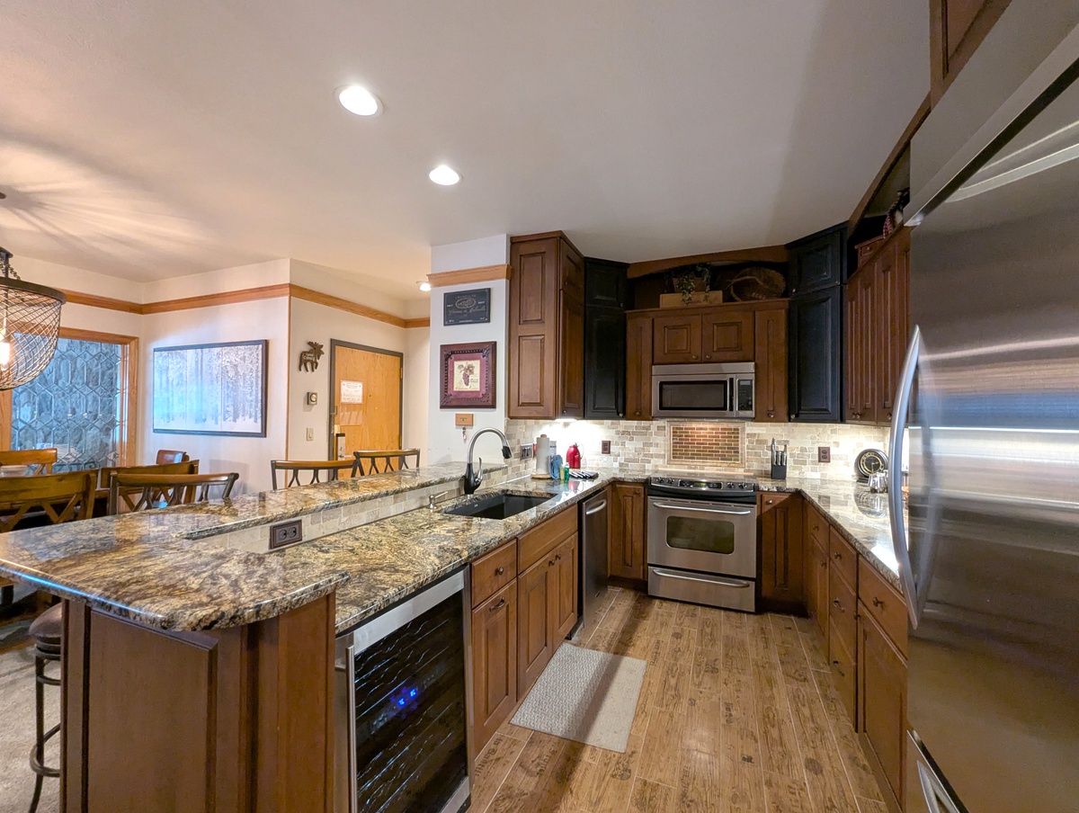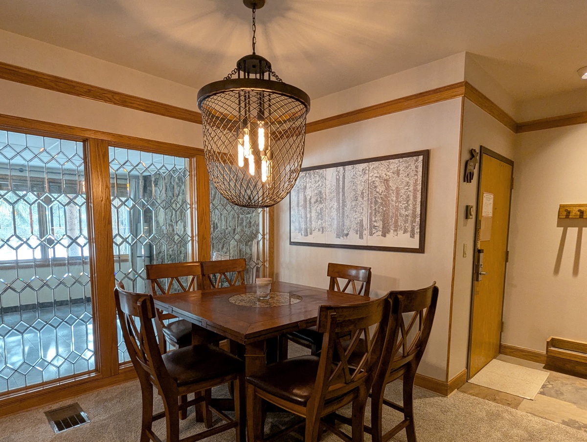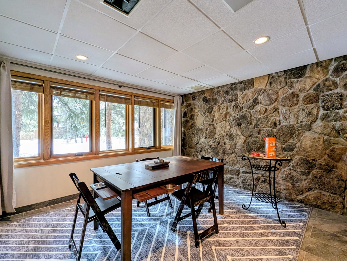 The kitchen and dining area are fully equipped for everything from quick breakfasts before hitting the slopes to relaxed dinners after a day of exploring Keystone. With ample counter space and modern appliances, cooking and entertaining feel effortless. The adjacent dining area makes it easy to linger over meals, plan the next day’s adventure, or enjoy a board game night with family and friends.