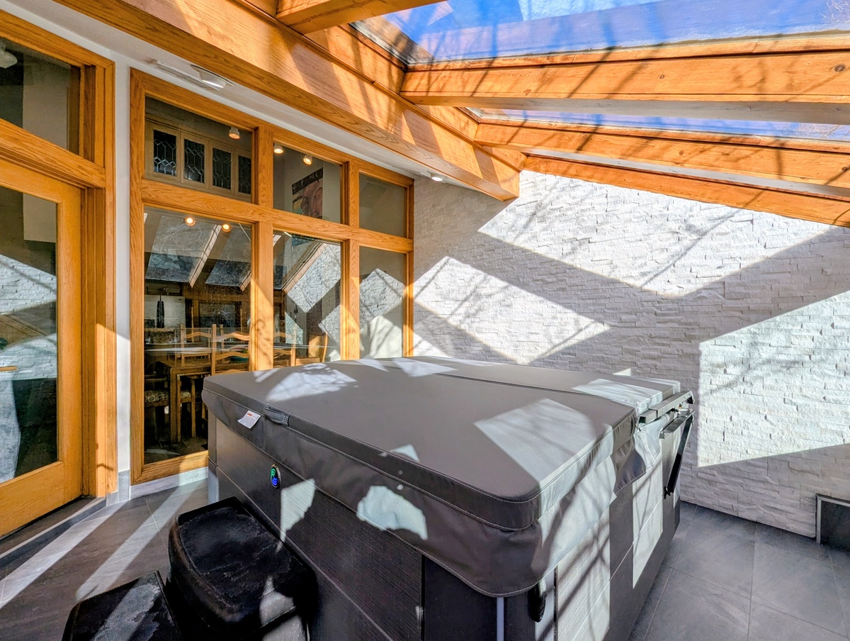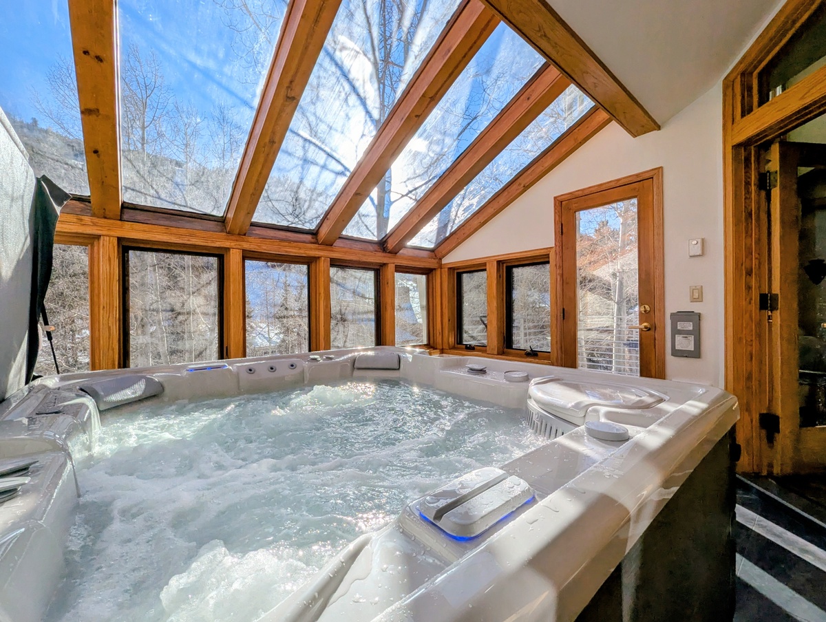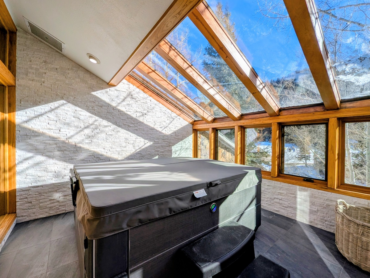 - Remodeled spa room featuring new hot tub, skylights, and mountain views.