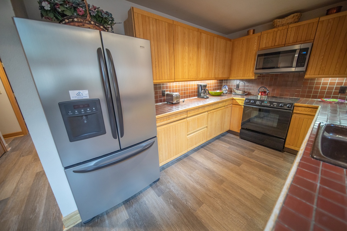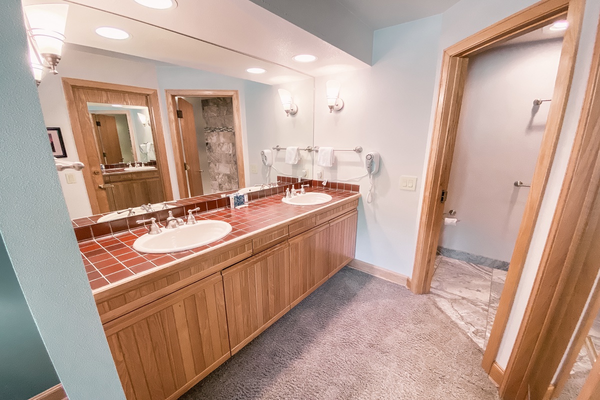 The 3 bedrooms in this condo provide ample space for up to 9 guests. Each bedroom has its own attached bathroom, making it easy for everyone to have their own space and privacy. The cozy and warm decor in each bedroom mimics the beauty of the mountain landscape outside, ensuring a restful night’s sleep every night.