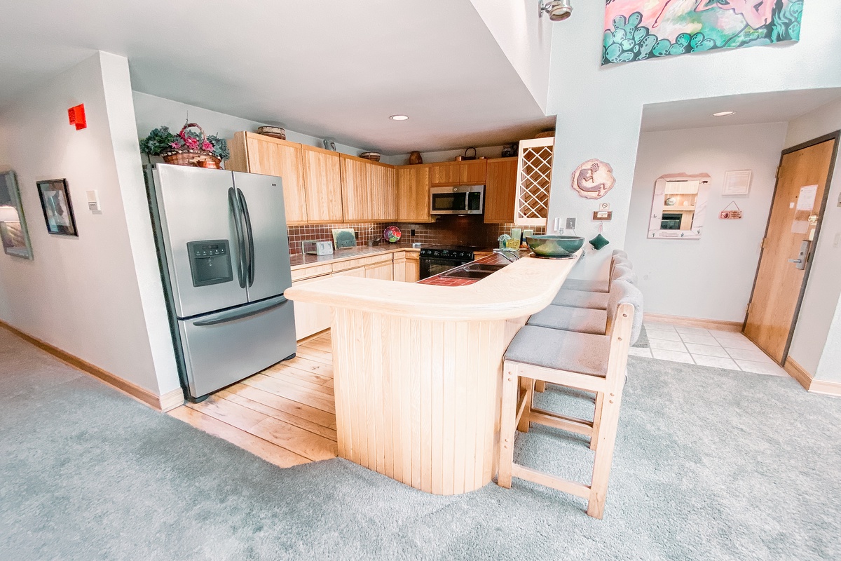 Step inside this beautifully furnished condo and you will be amazed by the stunning mountain views that can be seen from almost every room in the condo. The open floor plan provides a spacious and inviting atmosphere perfect for relaxing after a long day on the mountain. Whether you are cooking a meal in the fully equipped kitchen, taking a nap on the comfortable sofa or sitting on the balcony, you will feel right at home in this mountain retreat.