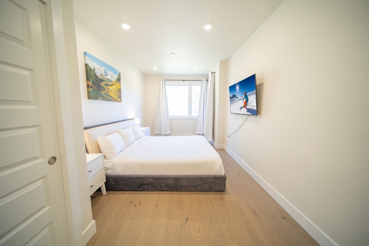 The two bedrooms are equally inviting, both offering comfortable bedding and ample storage space for your convenience. The bathrooms are modern and sleek, offering a spa-like experience after a day of adventuring in the mountains. The condos also boast free Wi-Fi, large windows, and flat-screen TVs in each room.