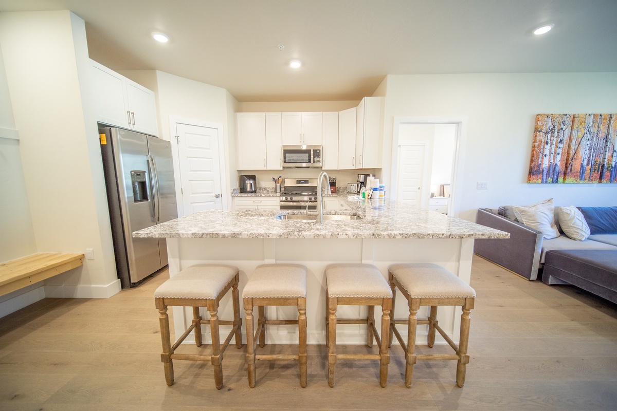 Built in 2021, these modern mountain style condos offer the best of everything for your Keystone Resort vacation! Each attractive condo features stylish finishes, premium kitchen appliances, granite countertops and spacious balconies. You will stay cozy and warm with the in-floor radiant heat. The private balconies allow unobstructed views of the surrounding Colorado scenery.