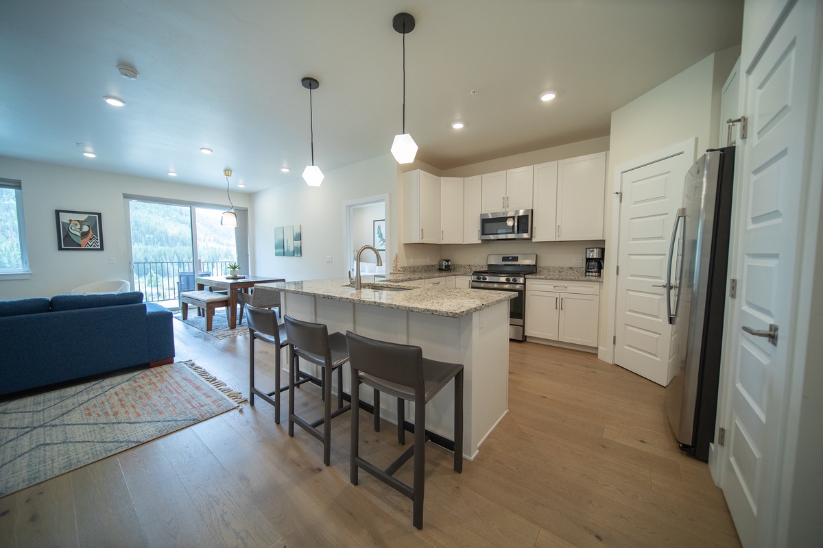 Built in 2021, these modern mountain style condos offer the best of everything for your Keystone Resort vacation! Each attractive condo features stylish finishes, premium kitchen appliances, granite countertops and spacious balconies. You will stay cozy and warm with the in-floor radiant heat. The private balconies allow unobstructed views of the surrounding Colorado scenery.