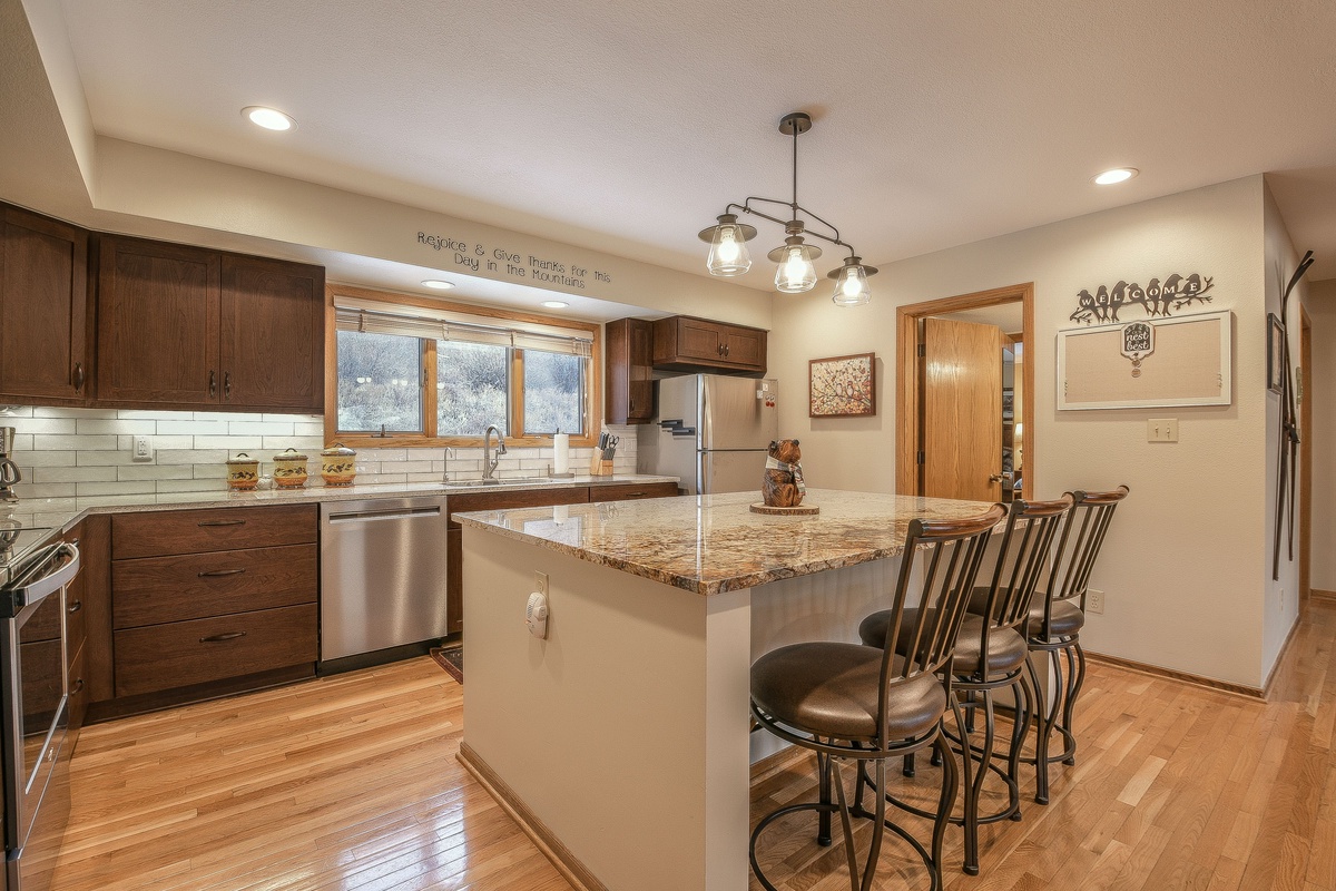 The kitchen at Enclave 12 is a chef's dream come true. Fully equipped with top-of-the-line appliances and plenty of counter space, you'll have everything you need to whip up gourmet meals for the whole crew. Serve up your creations at the large dining table or grab a snack at the breakfast bar.