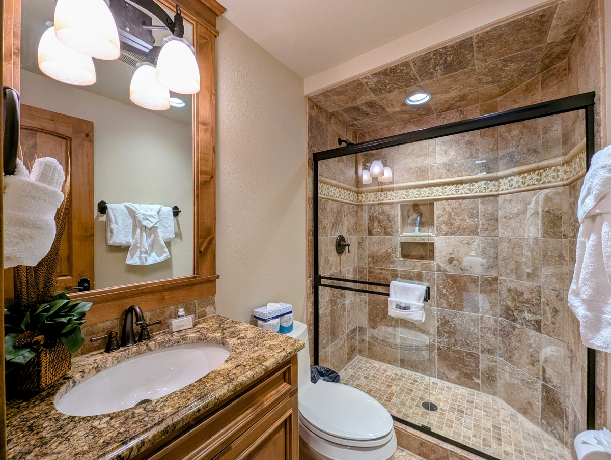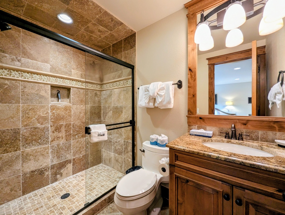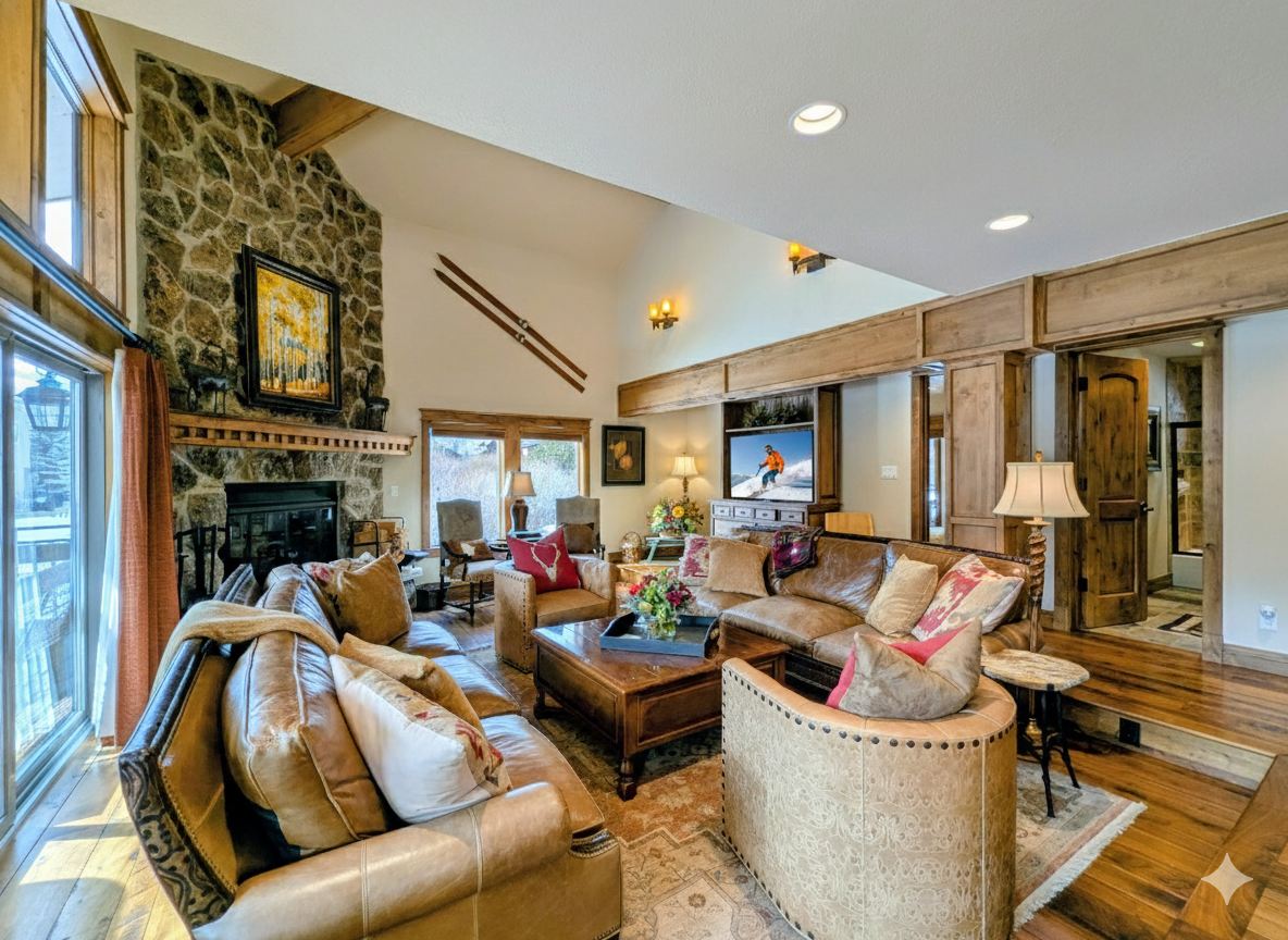 With five private bathrooms, mornings are smooth and stress-free, even with a full house. Each bedroom provides a quiet, comfortable place to recharge, offering privacy and space that’s ideal for larger groups traveling together. Thoughtful touches throughout the home create a cozy yet upscale mountain atmosphere.