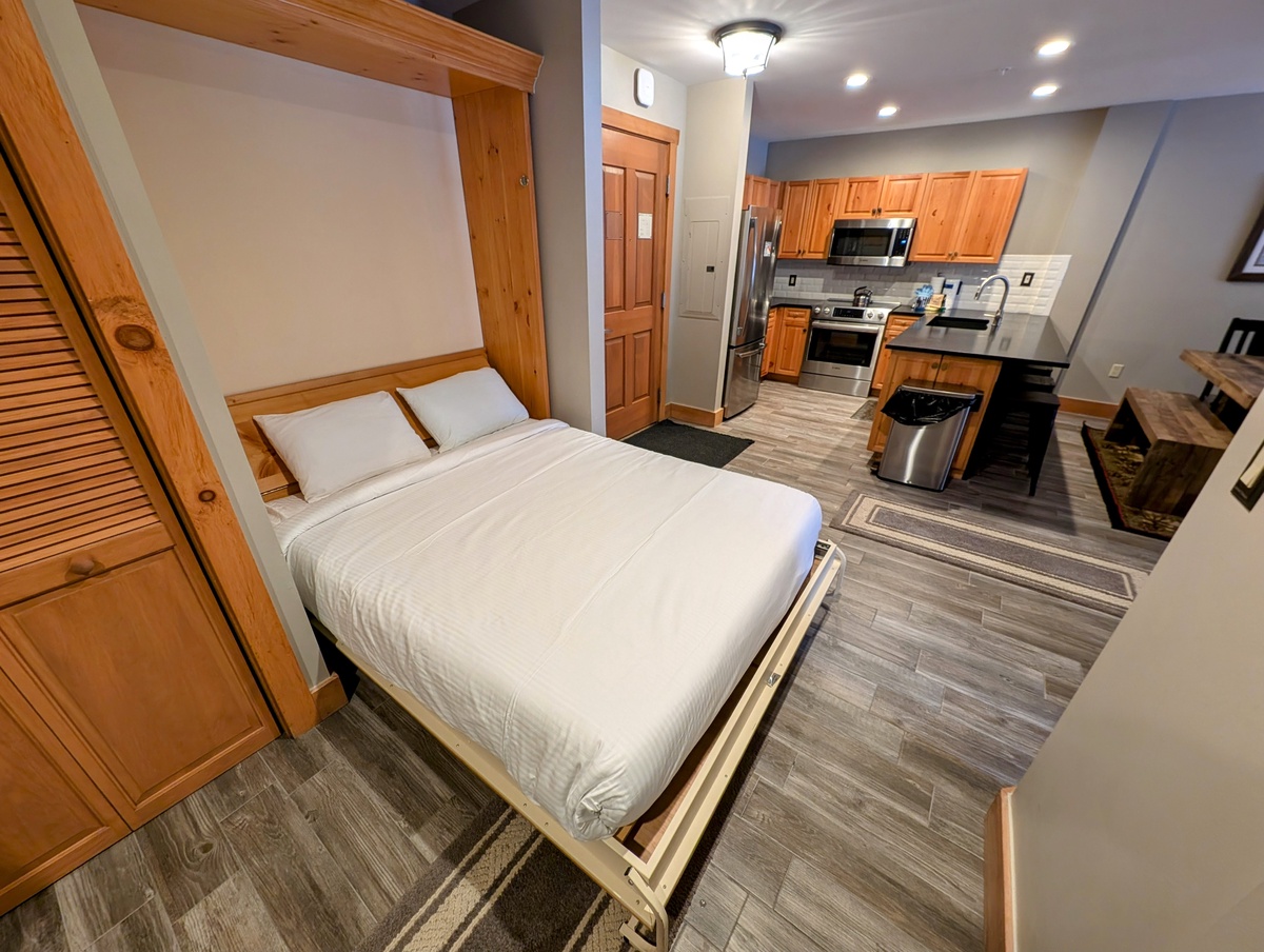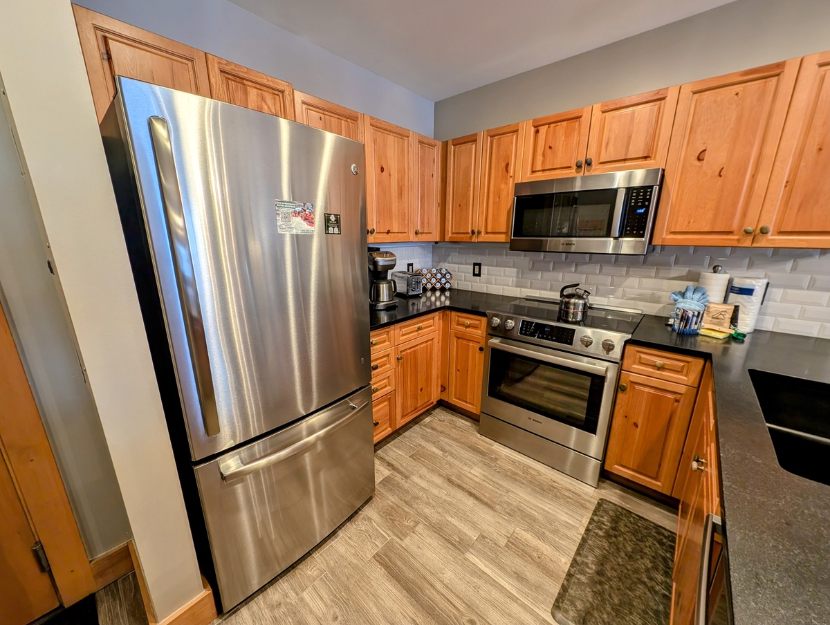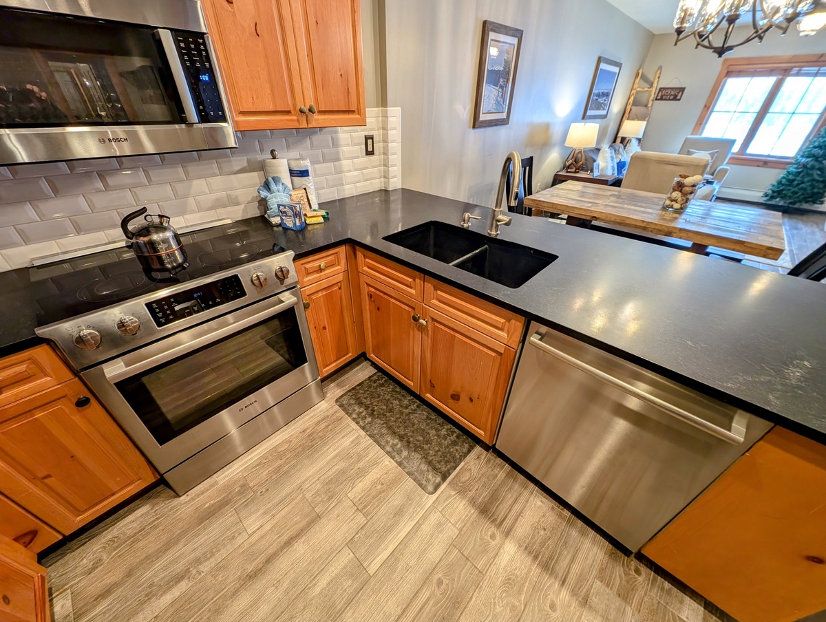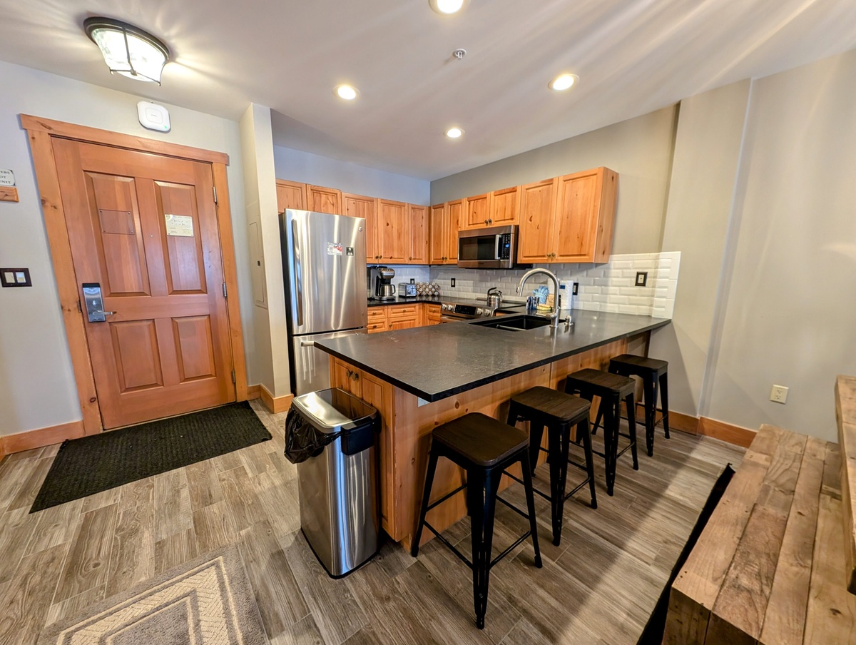 The fully equipped kitchen is a haven for culinary enthusiasts, featuring modern appliances, ample counter space, and all the essentials needed to whip up delicious meals. Prepare a hearty breakfast before hitting the slopes or savor a home-cooked dinner with loved ones around the dining table. The condo's layout is designed for effortless entertaining and quality time with family and friends.