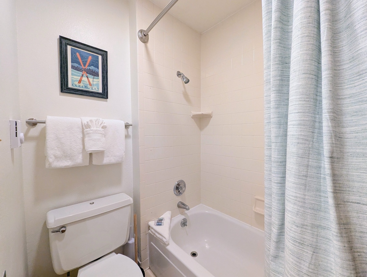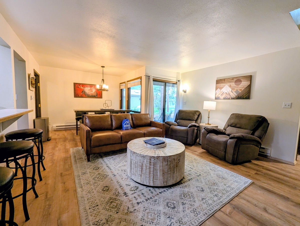 Both bedrooms are designed as peaceful retreats, with natural tones and thoughtful décor that enhance rest and relaxation. With two full bathrooms, mornings and evenings are seamless for everyone in your group. Additional amenities like complimentary Wi-Fi, ski storage, and access to outdoor hot tubs make your stay even more convenient.