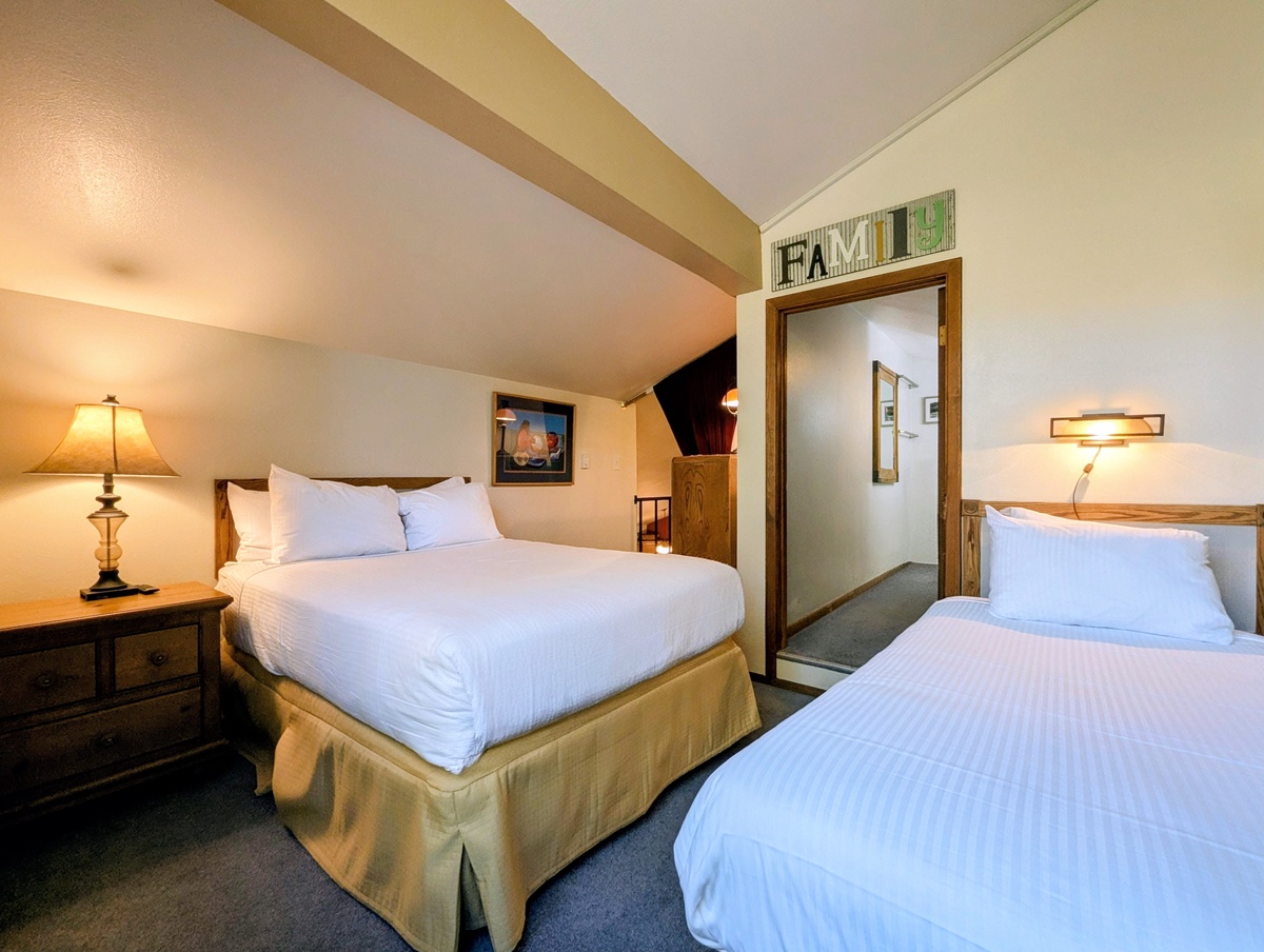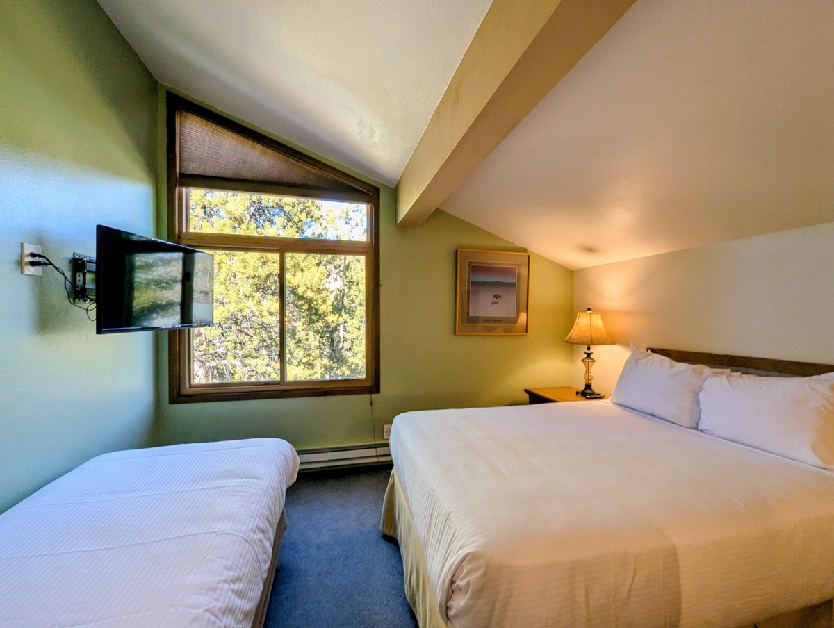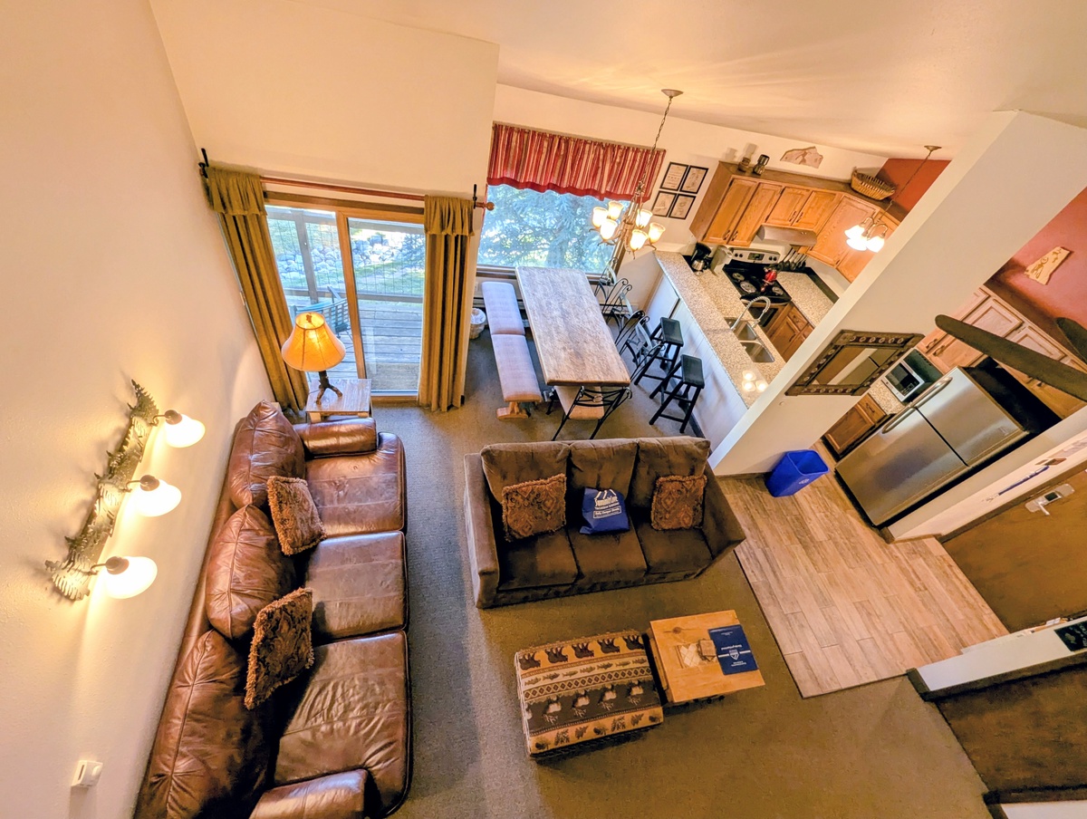 Both bedrooms are well-appointed with tasteful décor and practical storage, while additional sleeping arrangements in the living area offer flexibility for larger groups. Throughout the home, subtle mountain-inspired accents and clean modern styling create a cohesive, welcoming environment that complements the scenic surroundings of West Keystone.