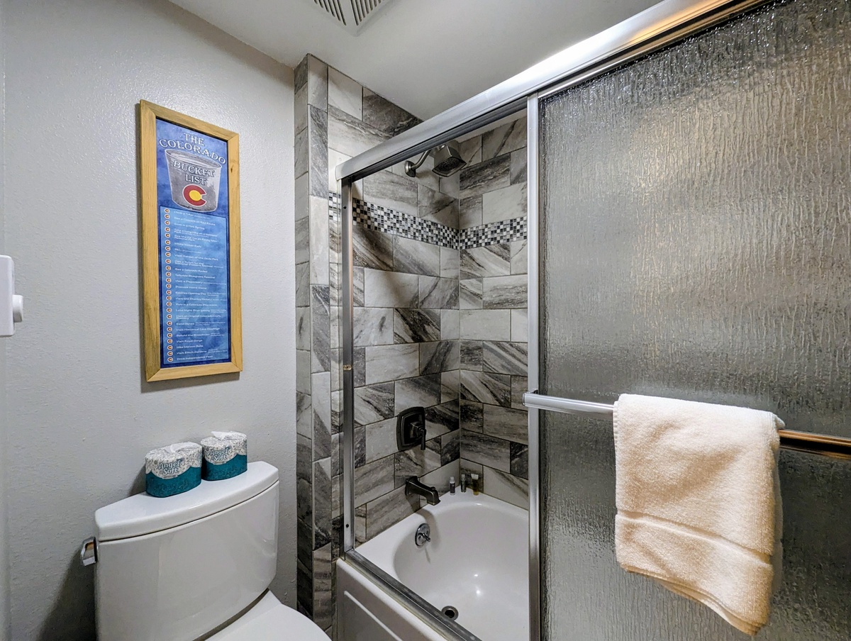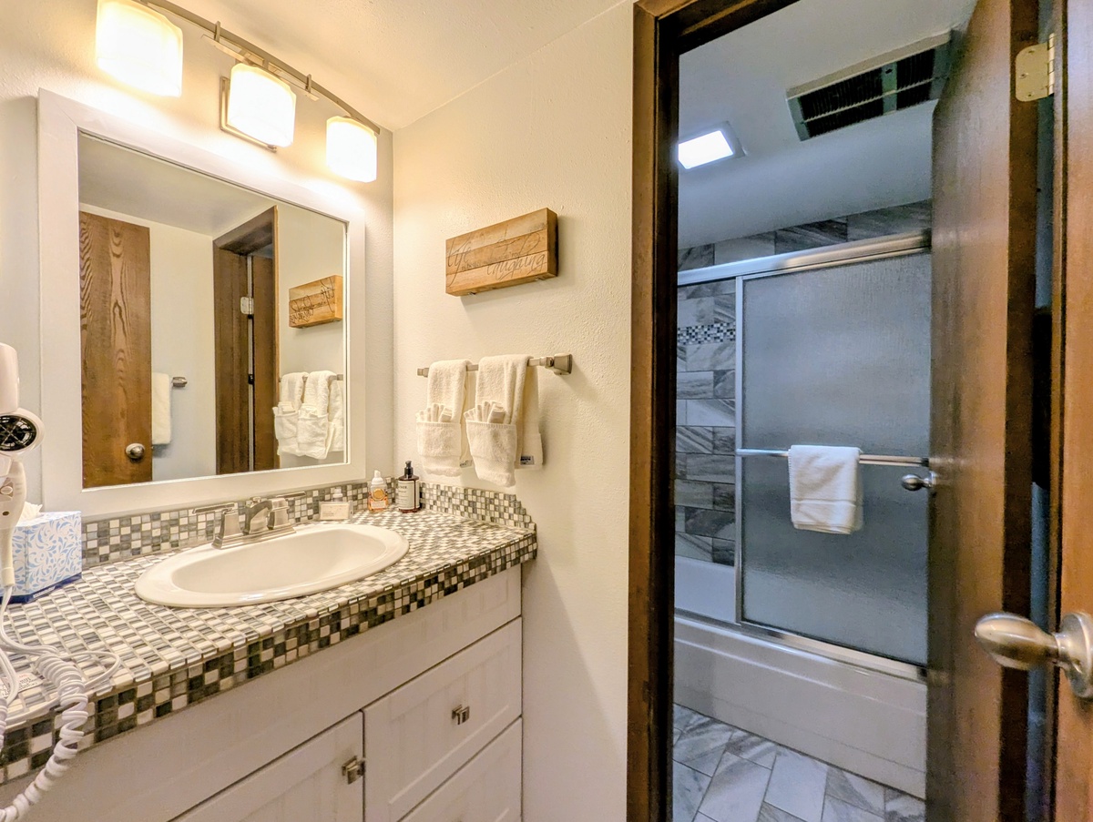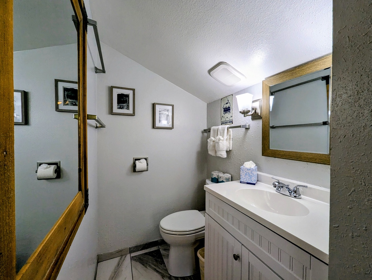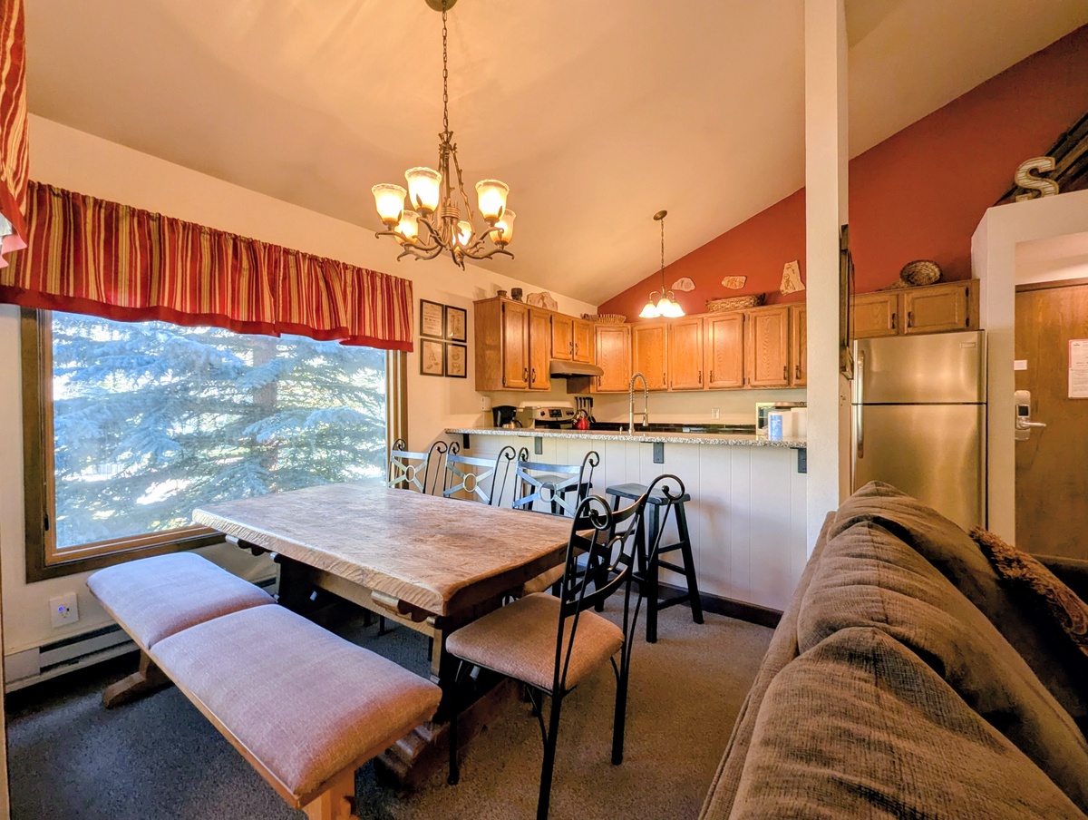 The fully equipped kitchen makes meal preparation effortless, with contemporary appliances, ample counter space, and a layout that encourages shared cooking and entertaining. With two fully refreshed bathrooms, guests enjoy both privacy and convenience, ensuring everyone in your group can start and end their day comfortably. The condo’s stylish finishes and thoughtful layout make it a versatile retreat for couples, families, or small groups looking to relax in a mountain-modern setting.