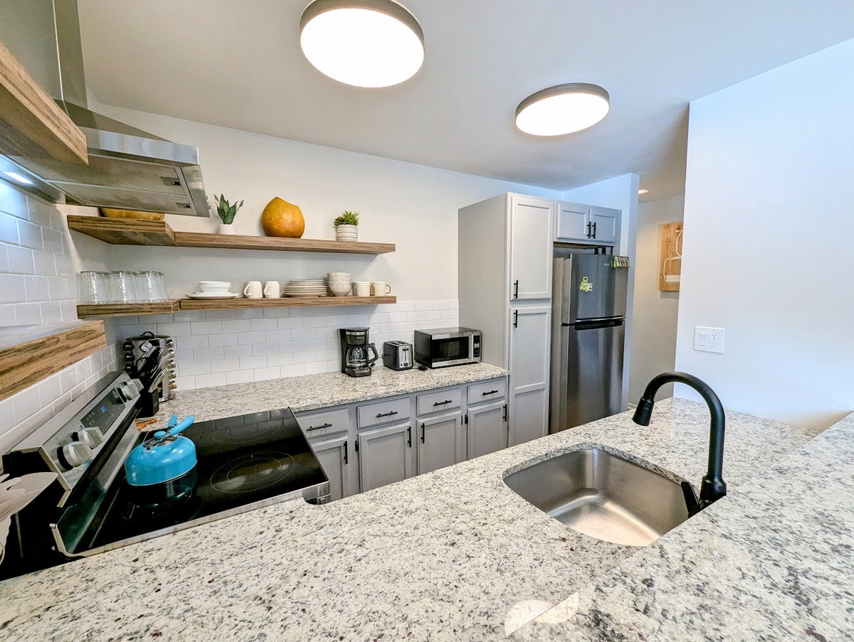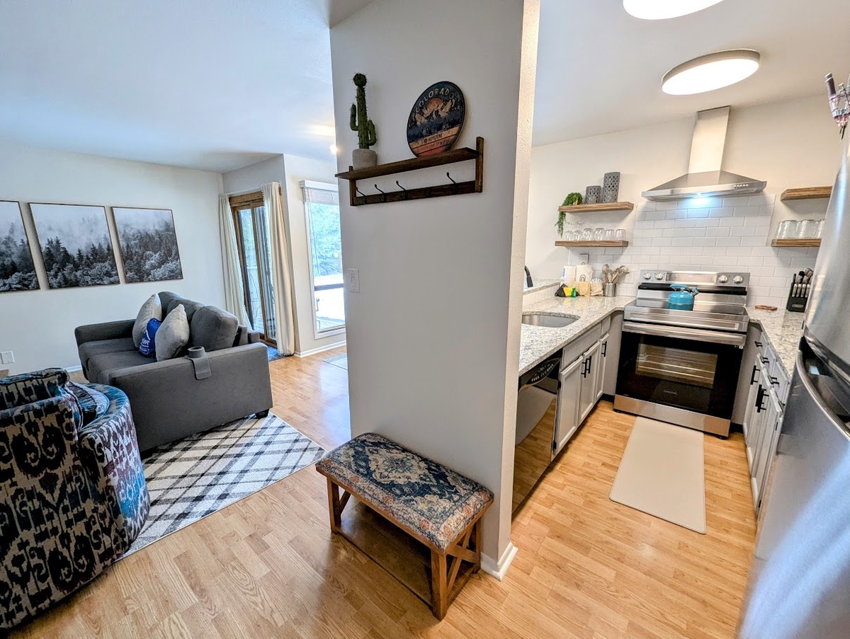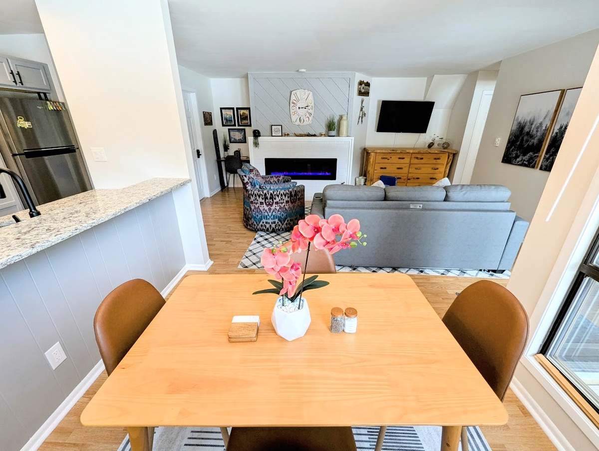 The fully equipped kitchen is ready for every culinary endeavor, featuring stainless steel appliances, generous counter space, and a welcoming dining area to gather with family or friends. The updated bathroom boasts contemporary fixtures and a fresh, spacious design, offering a comfortable and rejuvenating space to start or end your day. Throughout the condo, every detail has been thoughtfully refreshed to provide an upscale yet comfortable mountain living experience.
