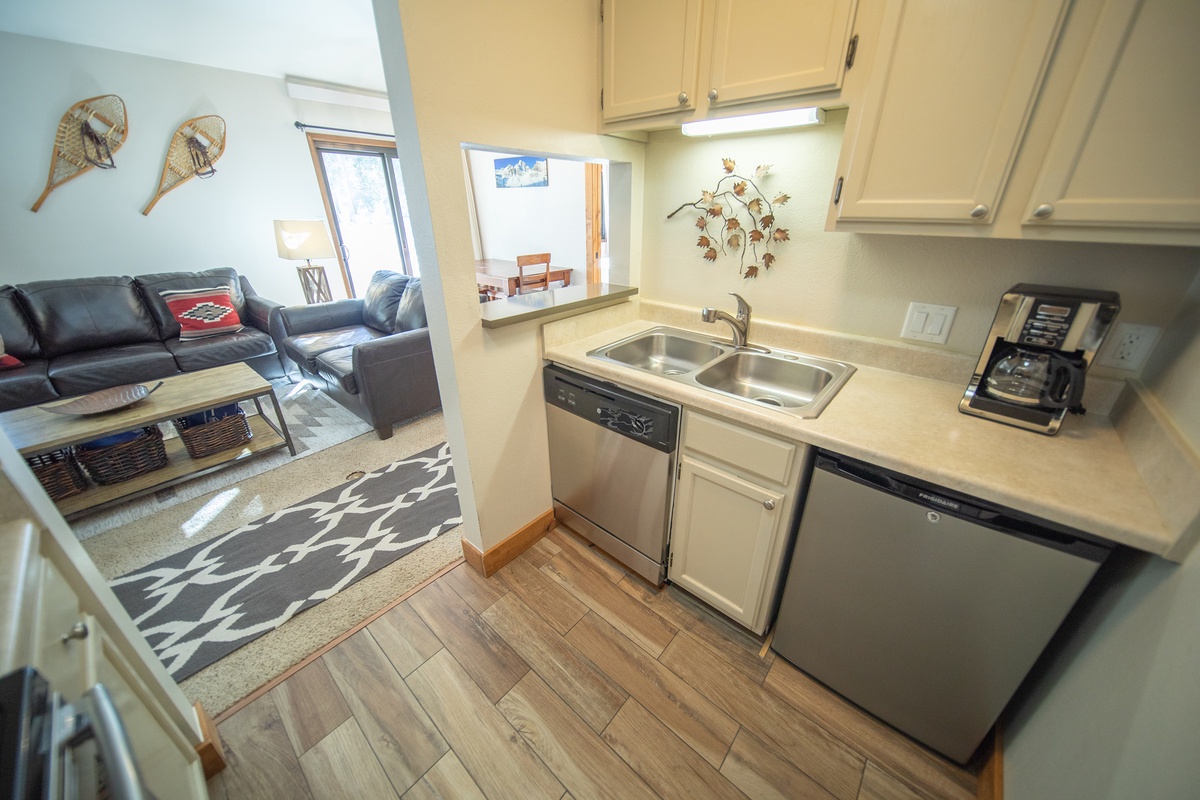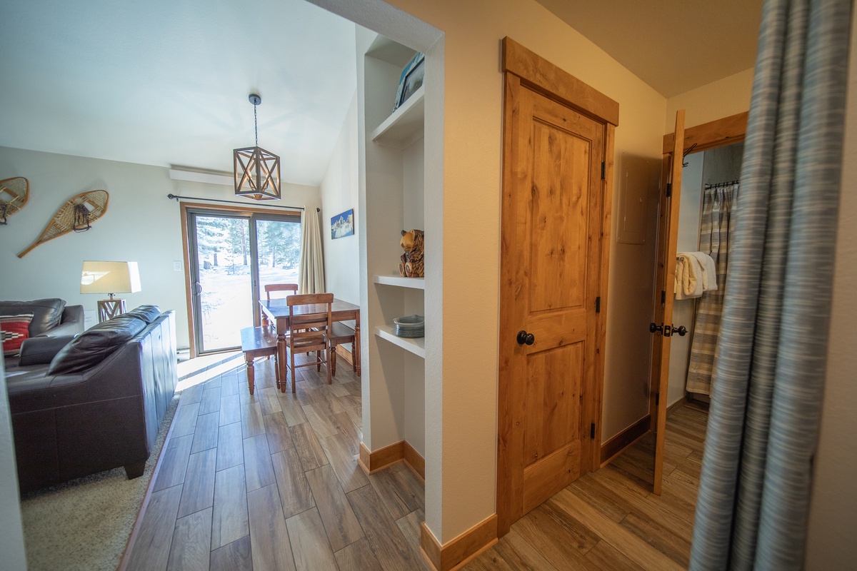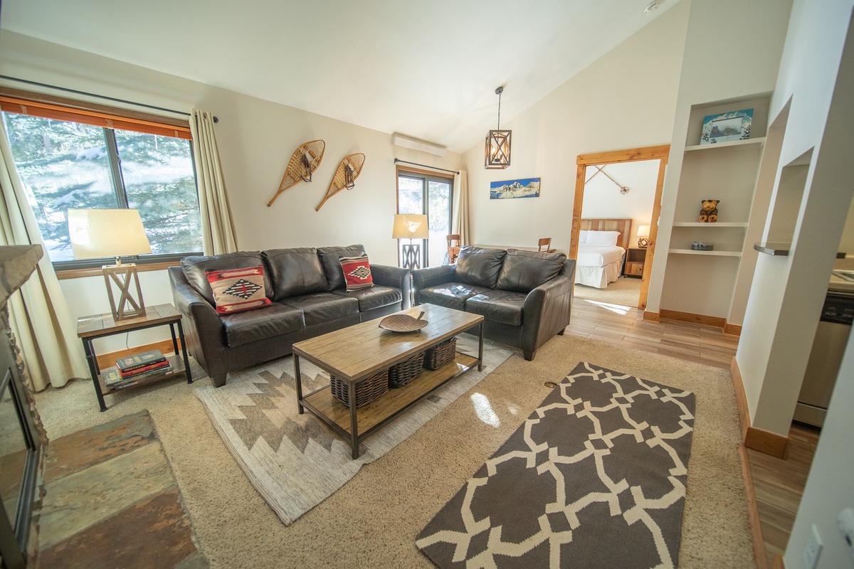 Upon entering Flying Dutchman 1174, you’ll be welcomed by a charming blend of rustic elegance and modern comfort. The bright, open living area is perfect for unwinding after a day on the slopes. Relax by the gas fireplace, share stories with friends, or enjoy a movie on the flat-screen TV. This cozy space features plush sofas, warm wood accents, and inviting décor that makes you feel right at home.