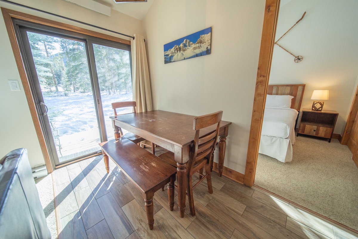 When it’s time to rest, retreat to the comfortable bedrooms, where soft linens and cozy bedding ensure a restful night’s sleep. Both rooms are thoughtfully decorated with ample storage and charming touches. Start your day with a cup of coffee on the private patio, accessible from the dining area, and take in the breathtaking mountain views.