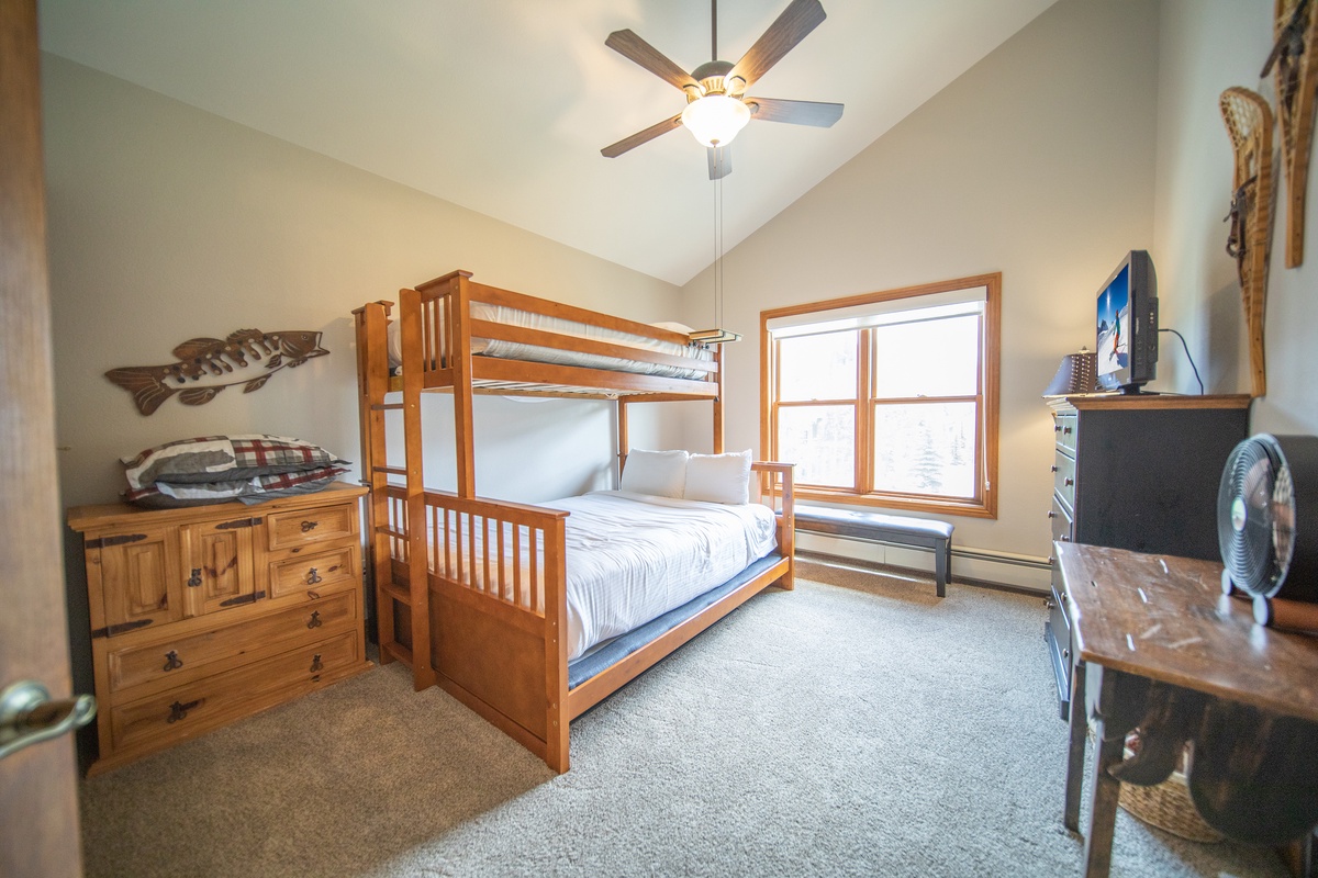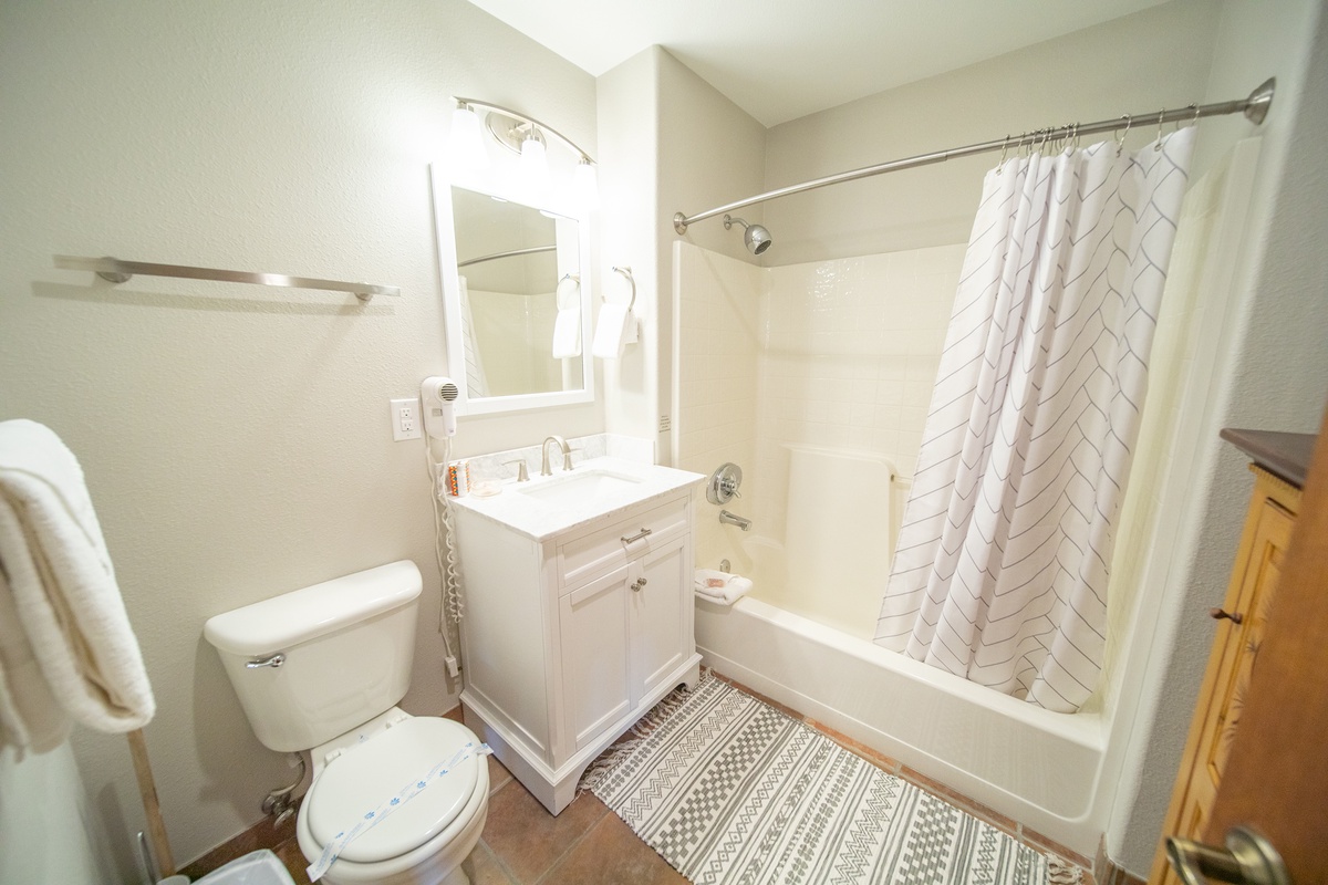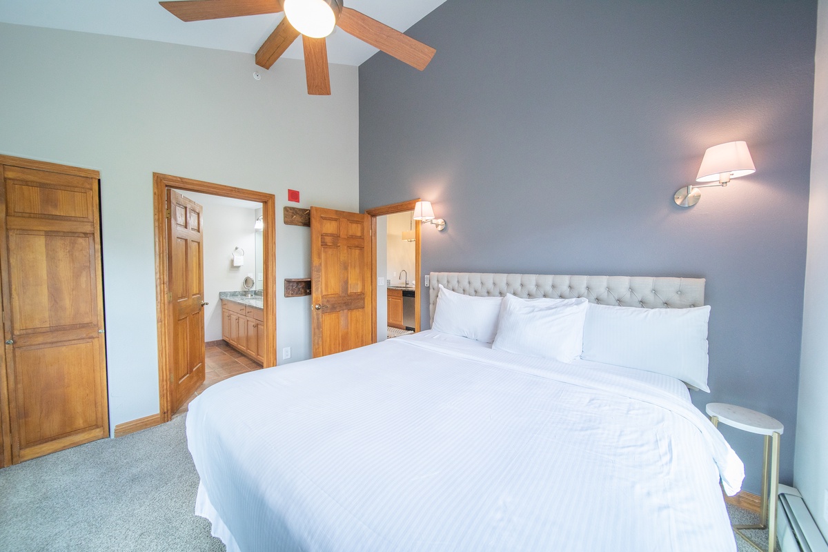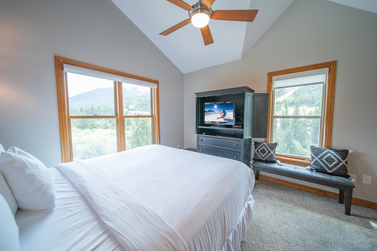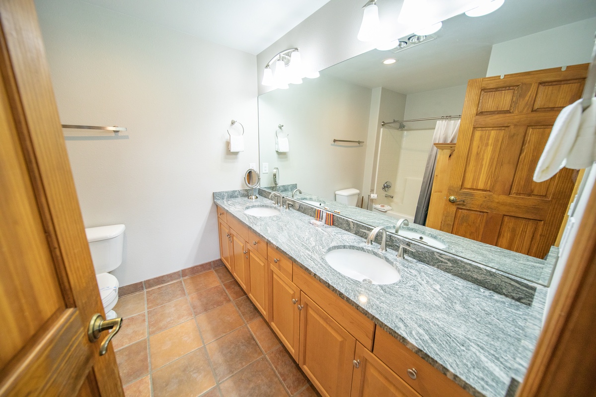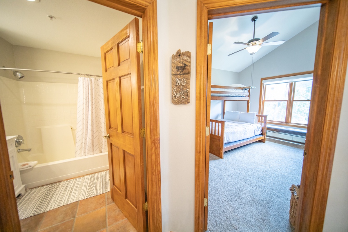 Each bedroom is a peaceful retreat after a day spent exploring the mountain. The master bedroom features a comfortable bed and an ensuite bathroom, while the second bedroom is perfect for friends or kids with with another flat-screen tv. The condo also features an additional full bathroom, ensuring everyone has plenty of space and privacy.