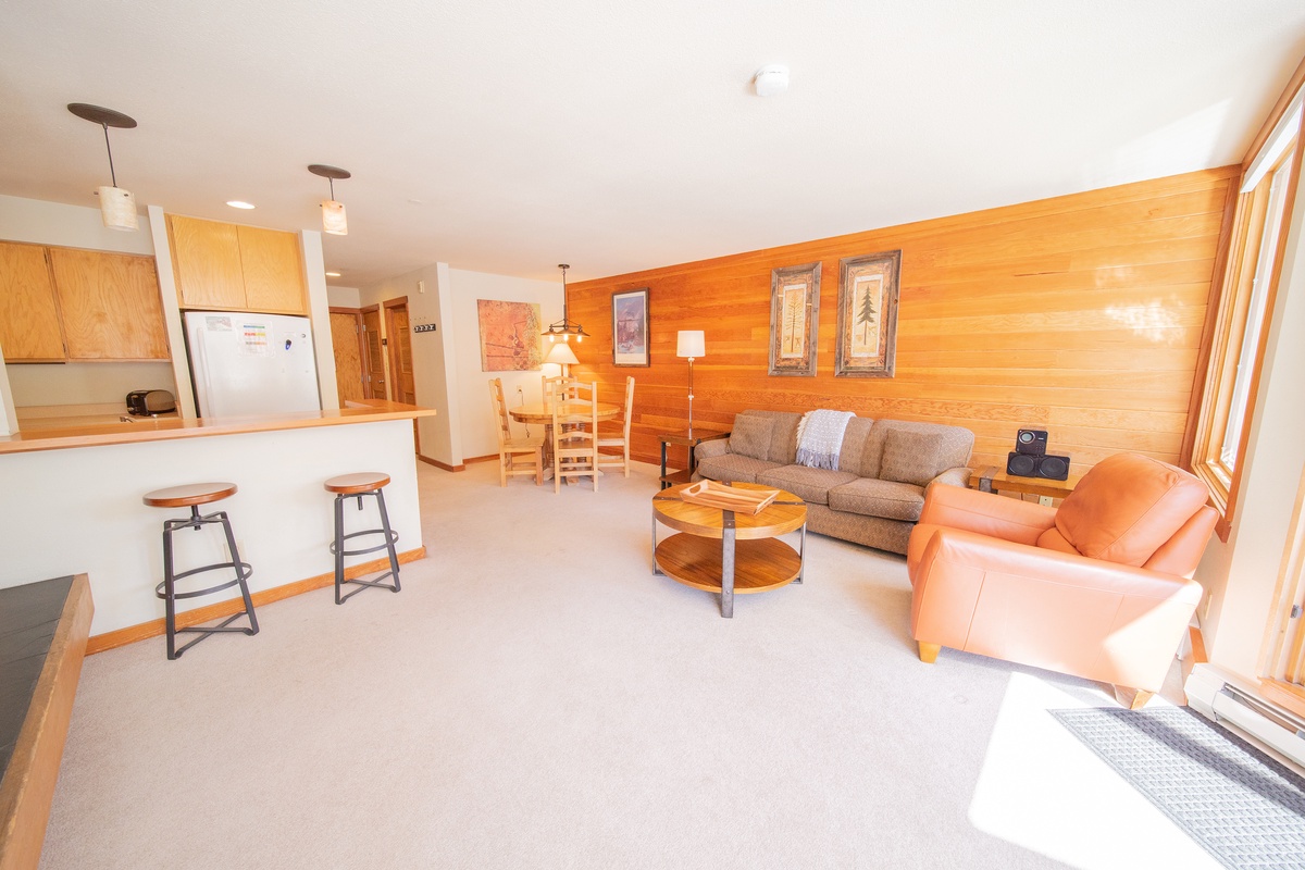 As you step into your new home away from home, you will immediately feel welcomed by the bright and airy atmosphere. Sun-drenched interiors, cozy furnishings, and charming decor provide a comfortable and relaxing retreat after a long day on the slopes. Whether you want to cook a delicious meal in the fully-equipped kitchen or unwind and watch a movie on the flat-screen TV, this condo has everything you need to make your stay unforgettable.