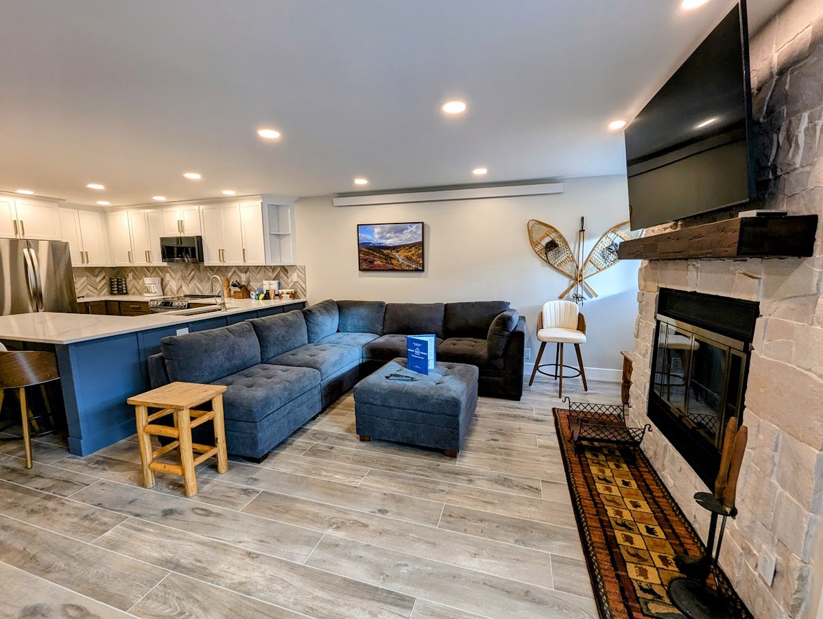 Inside, the condo exudes a warm and inviting ambiance, featuring a thoughtfully designed open-concept layout. The living area has large windows that allow natural light to flood the unit, creating the perfect atmosphere to relax after a day of outdoor activities. The fully equipped kitchen boasts modern appliances and everything you need to prepare hearty meals or light snacks to fuel your adventures.