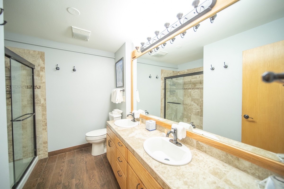 The bedroom serves as a tranquil haven, offering a peaceful retreat for a restful night's sleep after your mountain adventures. Wake up refreshed and step onto the private balcony to enjoy your morning coffee while breathing in the crisp mountain air.