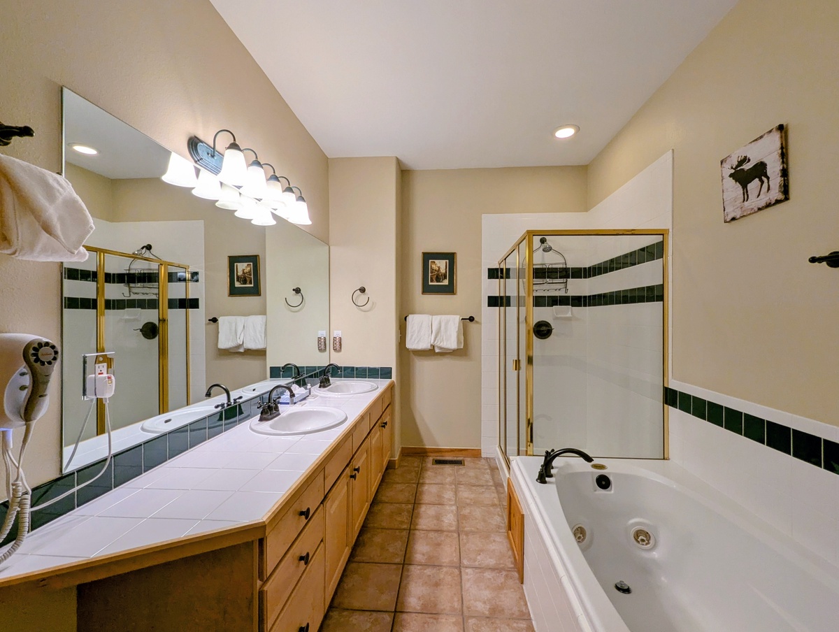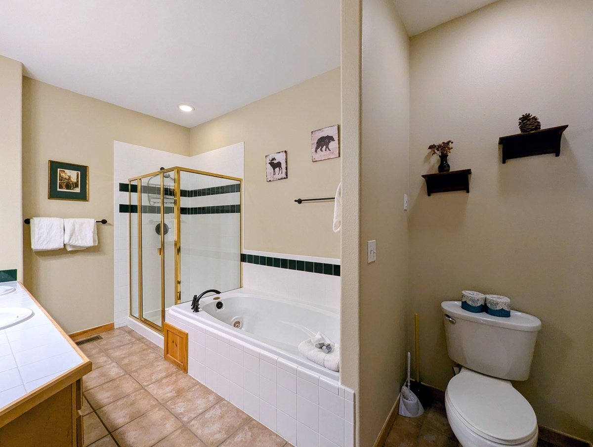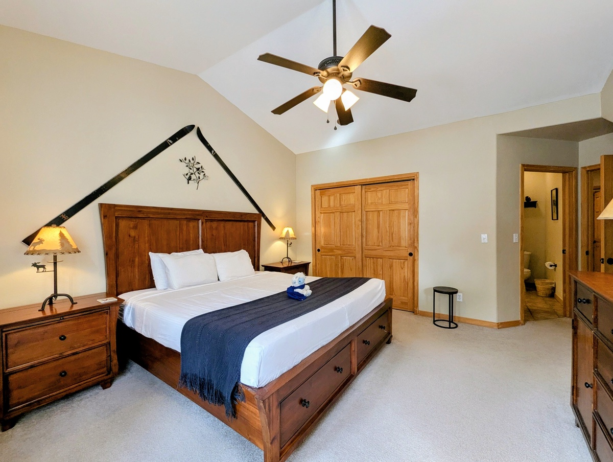 The convenient layout of this vacation rental means that each bedroom has its very own bathroom, so you can enjoy maximum privacy and comfort during your stay. The beautifully decorated bedrooms offer the perfect retreat after a long day of skiing or snowboarding.