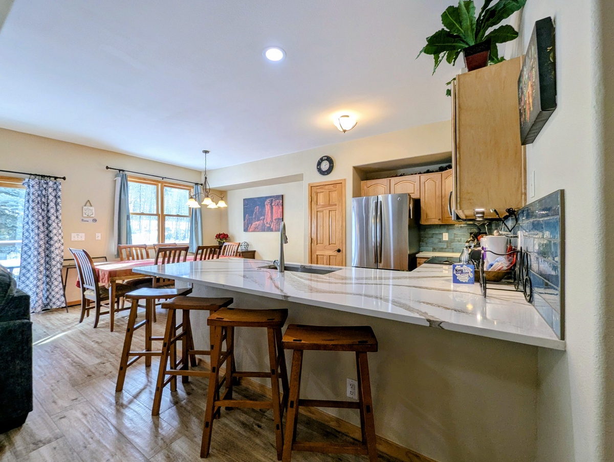 The Northstar complex itself offers amenities such as outdoor pool, indoor hot tub, and covered parking. As for its location, it's a short stroll to the free seasonal resort shuttle ensuring that you have easy access to the powdery slopes all day long. It's also a quick drive to Keystone’s River Run Village having everything you need - shops, restaurants, bars, and of course, the gondola.
