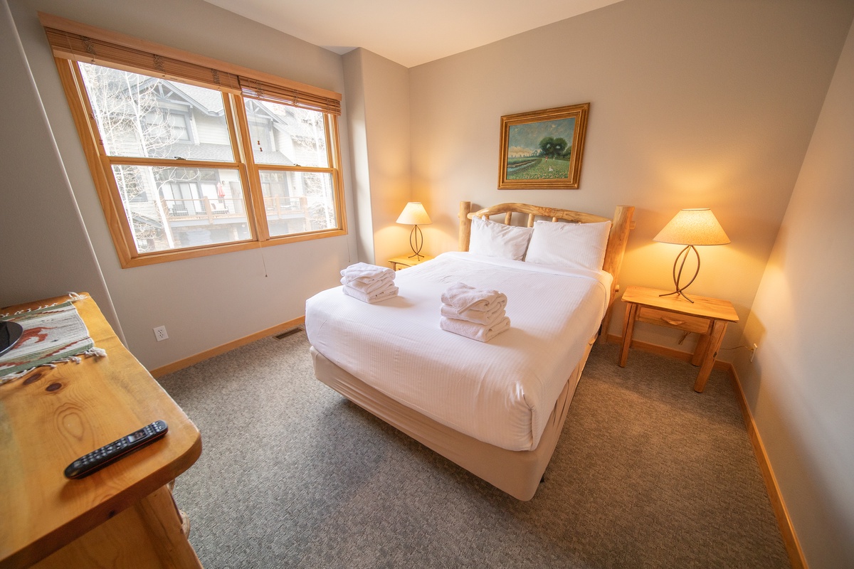 Step out onto the private balcony and immerse yourself in the serene beauty of the Rockies. From here, you can enjoy a warm cup of coffee while taking in the panoramic views of the surrounding mountains and pristine ski slopes.