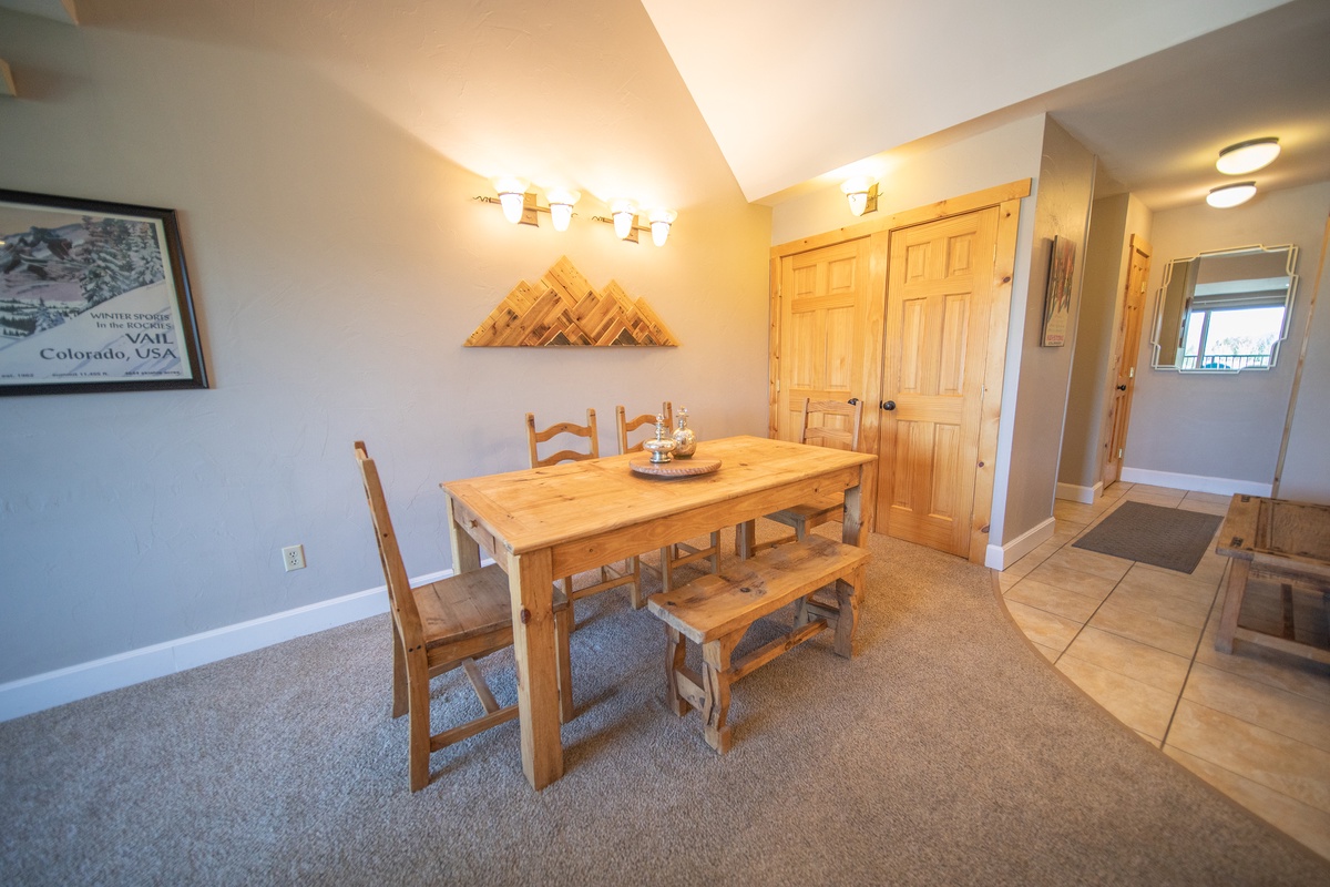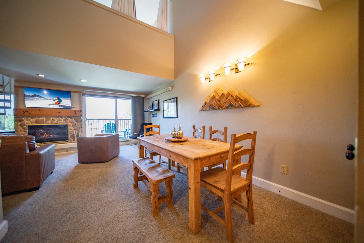 Located in Lakeside Village, this condo places you at the heart of Keystone Lakeside Village where you will find shops, restaurants and other amenities. In winter, you’re just a short shuttle ride away from the ski slopes, where you can enjoy world-class skiing and snowboarding. The shuttle stop is conveniently located just steps from your front door, making it easy to access the ski lifts (limiting waking in ski boots!) and return home to warm up by the fire. In the warmer months, the village transforms into a hub for outdoor recreation, including hiking, biking, and paddleboarding on the nearby lake.