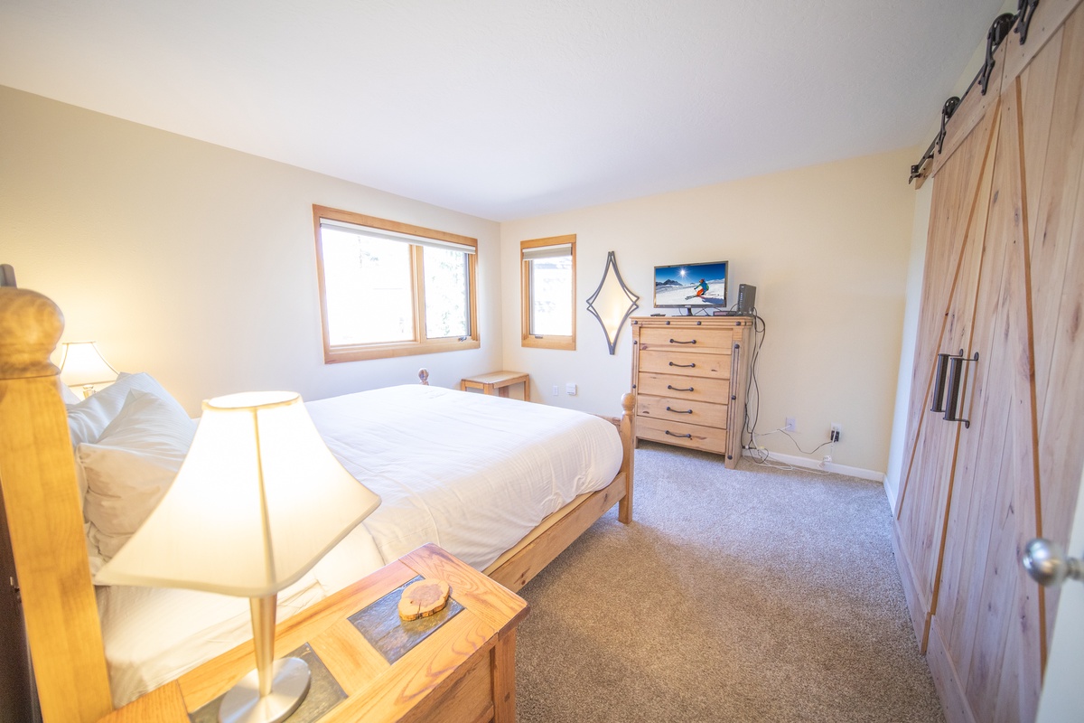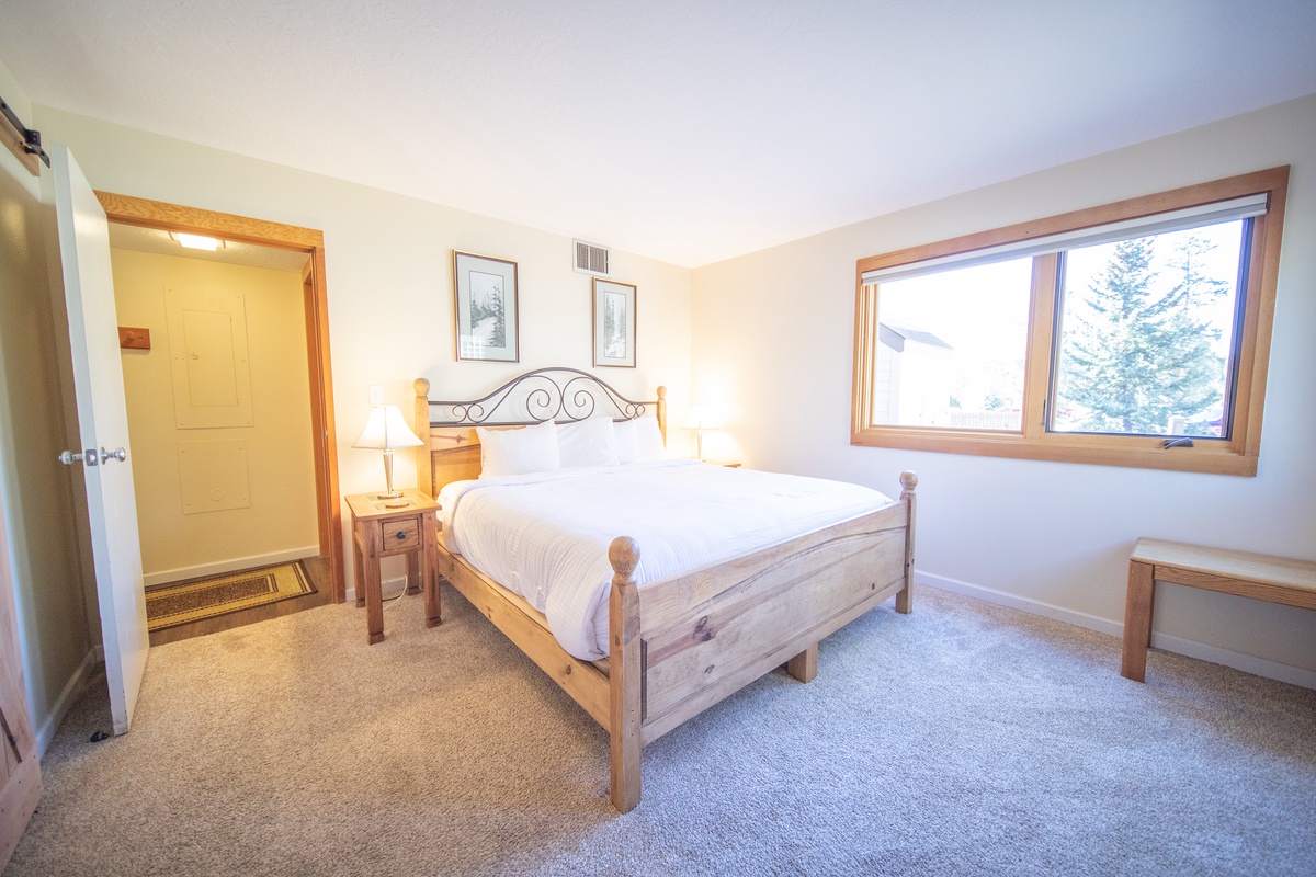 The bedroom is spacious and comfortable, providing ample space to stretch out and relax after a long day of adventure. The bathroom is modern and features a spacious shower, providing a comfortable and convenient space to freshen up before hitting the town. When you're not out taking in all that Keystone has to offer, you can enjoy some of the resort amenities, including ski storage, a heated indoor pool, and an outdoor patio area.