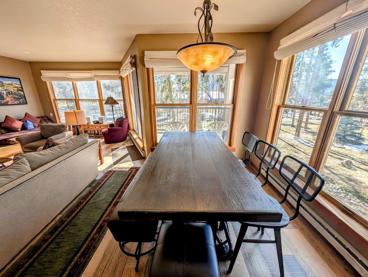 Nestled in the pines and aspens of north Keystone, with gorgeous views towards the Keystone Gulch, you’ll still only be about a mile away from all of the action in River Run and Mountain House. Perfect for a couple or family looking for some privacy at their condo and proximity to mountain activities. This is a great location for a quick walk to the Conference Center or to the Lakeside Village at Keystone. Hilly landscapes with green grass and lots of trees make this a beautiful area to be!