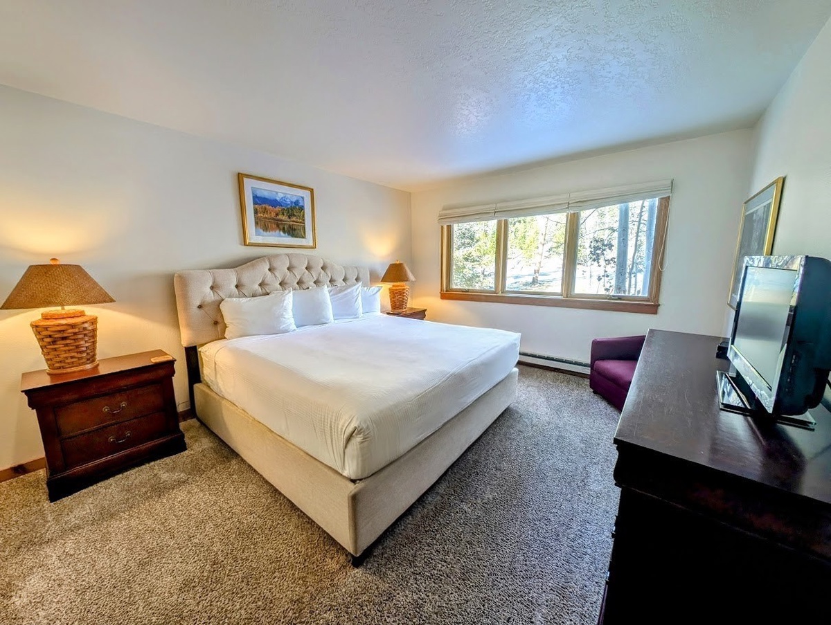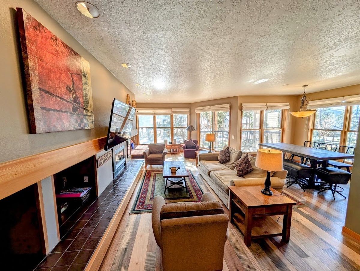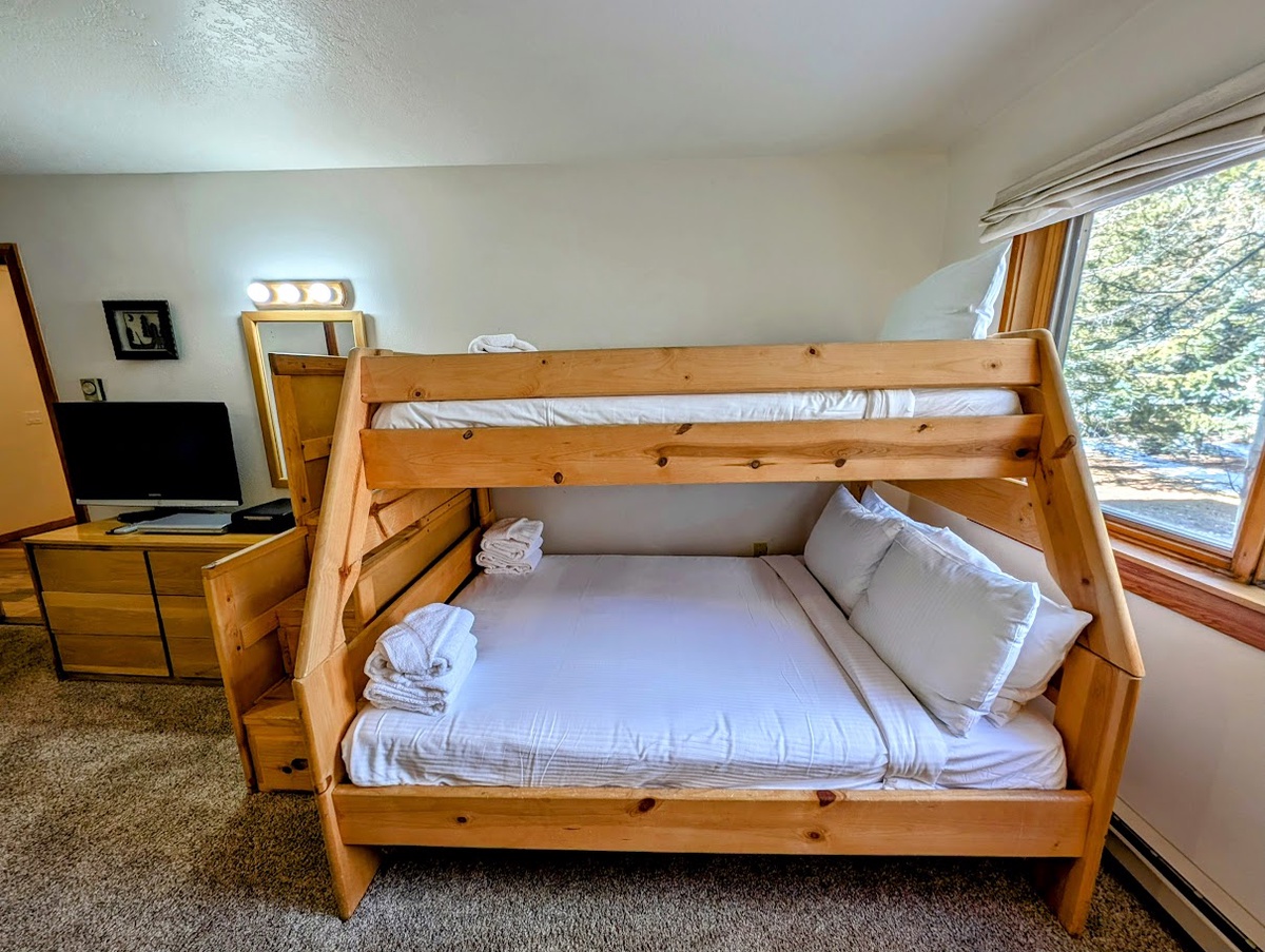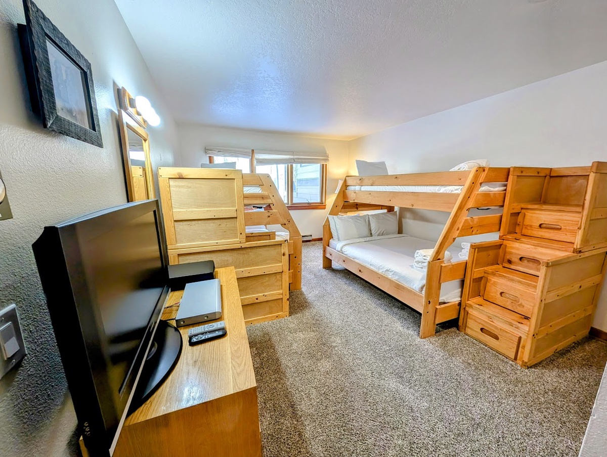 Quicksilver 1660 is located just minutes from the ski lift and boasts proximity to the mountain's plethora of activities. Enjoy various winter sports like skiing, snowboarding, snowmobiling, and ice-skating. The resort offers a seasonal shuttle service that drops guests off at the ski lifts, making the location ideal and convenient. After a long day of outdoor activities, enjoy a dip in the heated indoor swimming pool, hot tub and relax in the sauna. The condo offers a wide range of entertainment options right within the unit. Enjoy access to the WiFi and multiple TVs, including a large flat-screen TV in the living room.