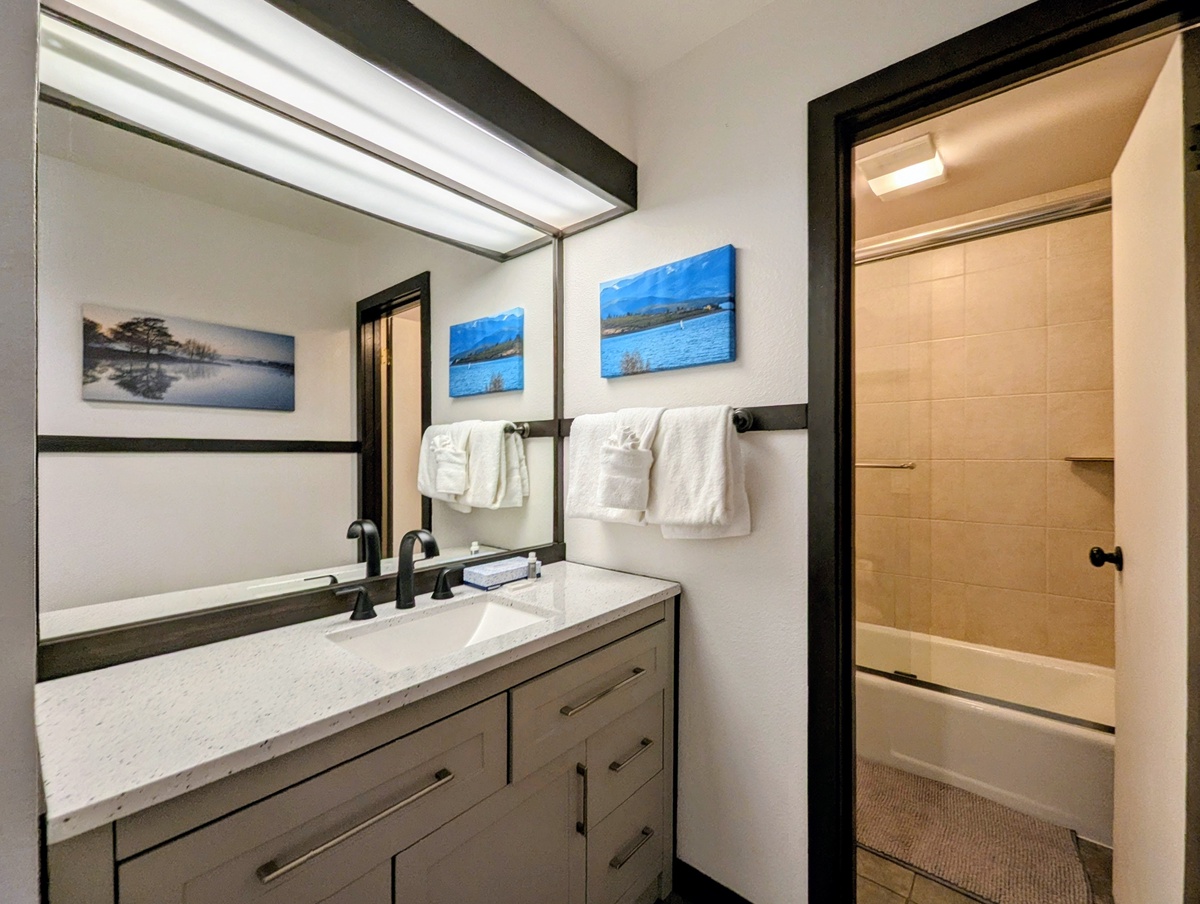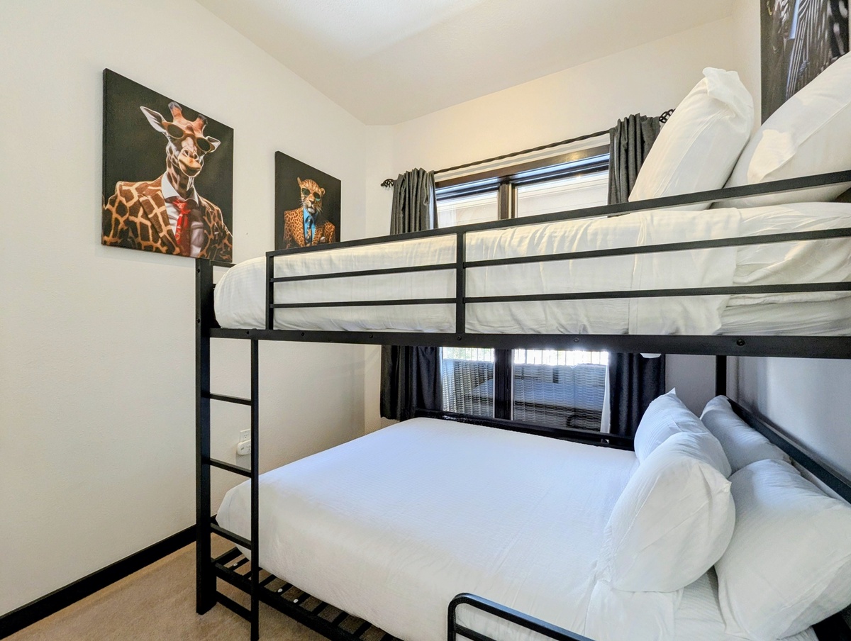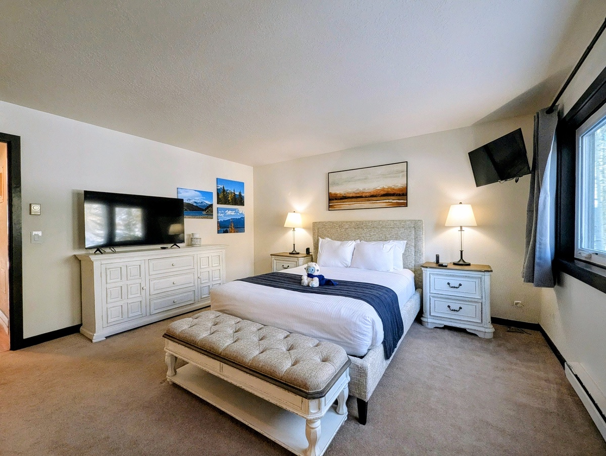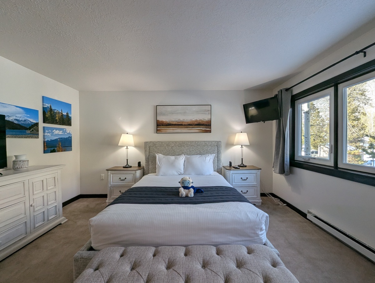 Both bedrooms are comfortably appointed and thoughtfully designed to provide restful nights after full days on the mountain. The bathroom is clean, functional, and well laid out for easy use by the entire group. This condo’s simplicity and practicality make it especially appealing for guests who value comfort without unnecessary fuss.