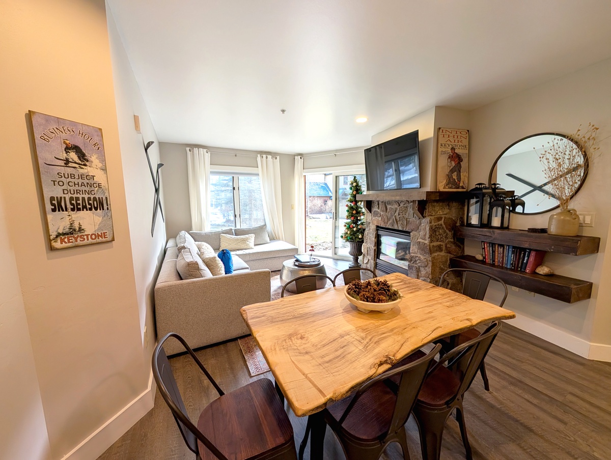 The condo's prime location puts you just a stone's throw away from the Keystone ski slopes. From your doorstep, it's a comfortable walk to the high-speed gondola, placing some of the best skiing and snowboarding in the country at your disposal. In warmer months, the area blossoms into a vibrant playground with hiking, mountain biking, and other outdoor activities. Shops, restaurants, and nightlife in the charming River Run Village are a stroll away, giving you the best of Keystone's dining and entertainment options.