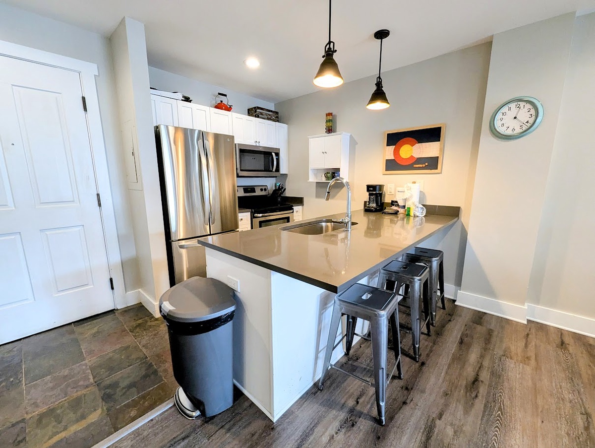 Nestled in the heart of Keystone's River Run Village, this sophisticated 2-bedroom, 3-bathroom vacation condo serves as an ideal retreat for outdoor enthusiasts and peace seekers alike. Infused with alpine charm and modern elegance, the home perfectly blends comfort with luxury, ensuring an unforgettable stay for our guests. Delight in the stunning mountain views, soak up the sun in the spacious living area, or indulge in homemade meals in the fully equipped kitchen - this condo offers it all!