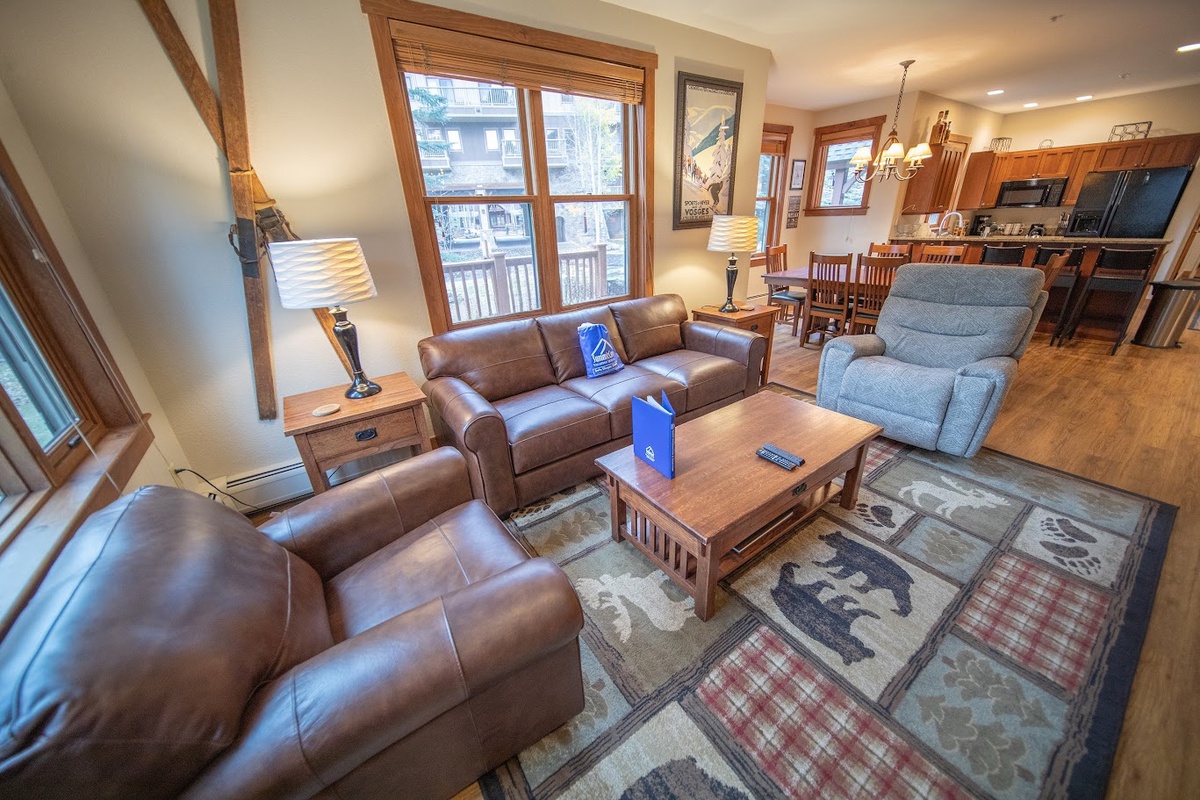 Immerse yourself in the mountain-inspired splendor of our elegant 2-bedroom, 2-bath townhome nestled within Keystone’s vibrant River Run Village. A blissful haven of comfort and style, this exquisite property provides an unbeatable blend of location and amenities. The townhome's architecture harmoniously combines traditional mountain aesthetics with modern finishes, reflecting the spirit of its stunning alpine surroundings. Embrace the day with a warm cup of coffee in the bright, spacious living room, where sweeping vistas of the enchanting mountain landscape take center stage through large windows.
