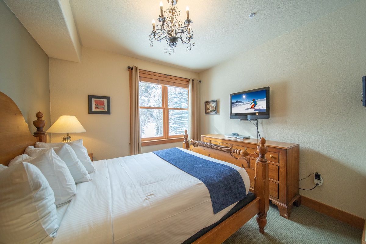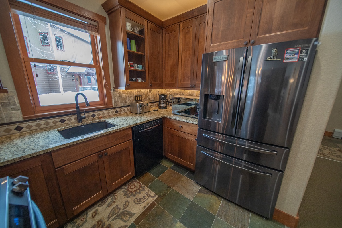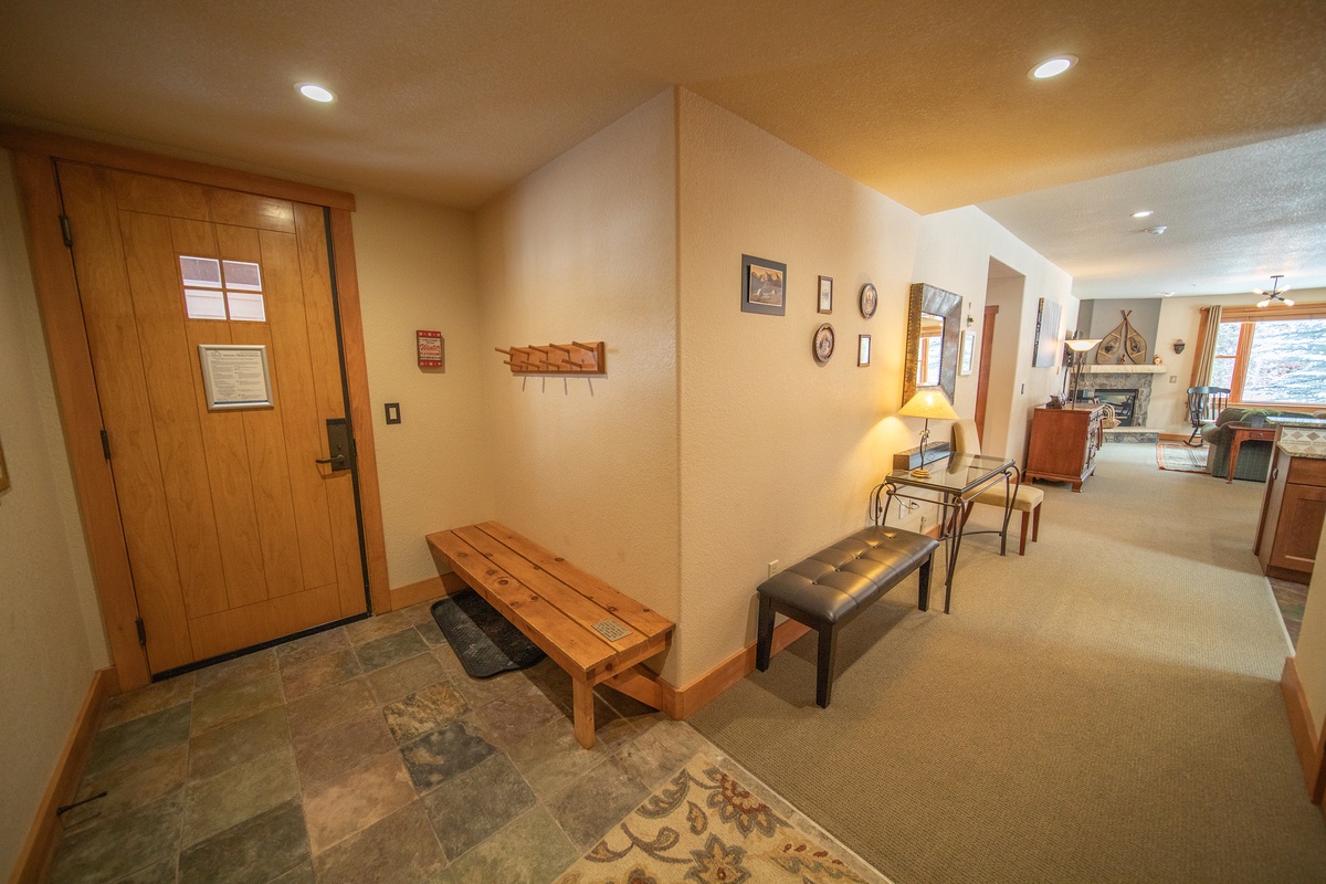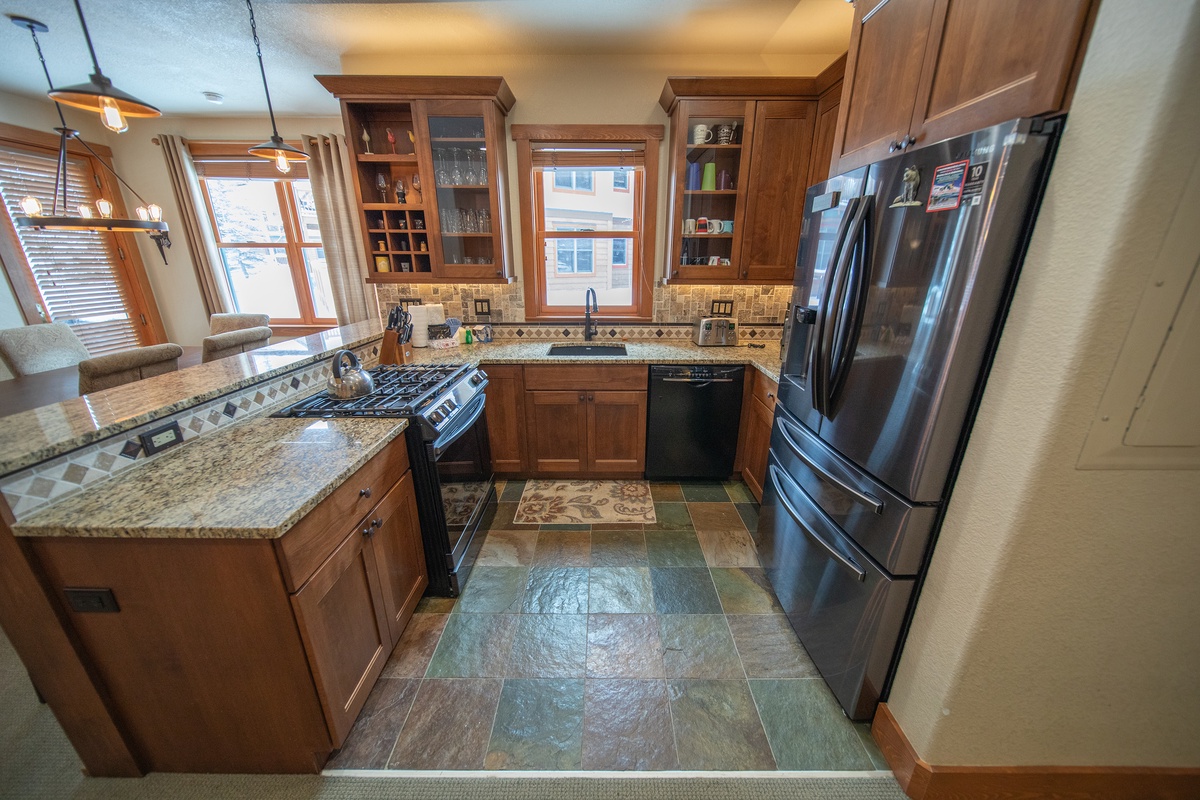 Step into the open-concept living area, with new and tastful furnishings. Where a cozy couch invites you to lounge in front of the stone fireplace. Sink into its softness and warm up after a day on the slopes, as you indulge in the high-definition entertainment system. The living room opens onto a private balcony, the ideal perch for taking in the crisp mountain air and scenic views of Keystone's splendid landscapes.