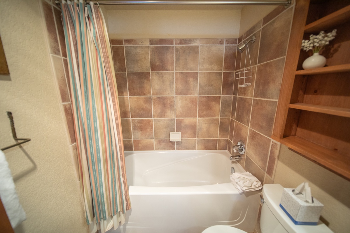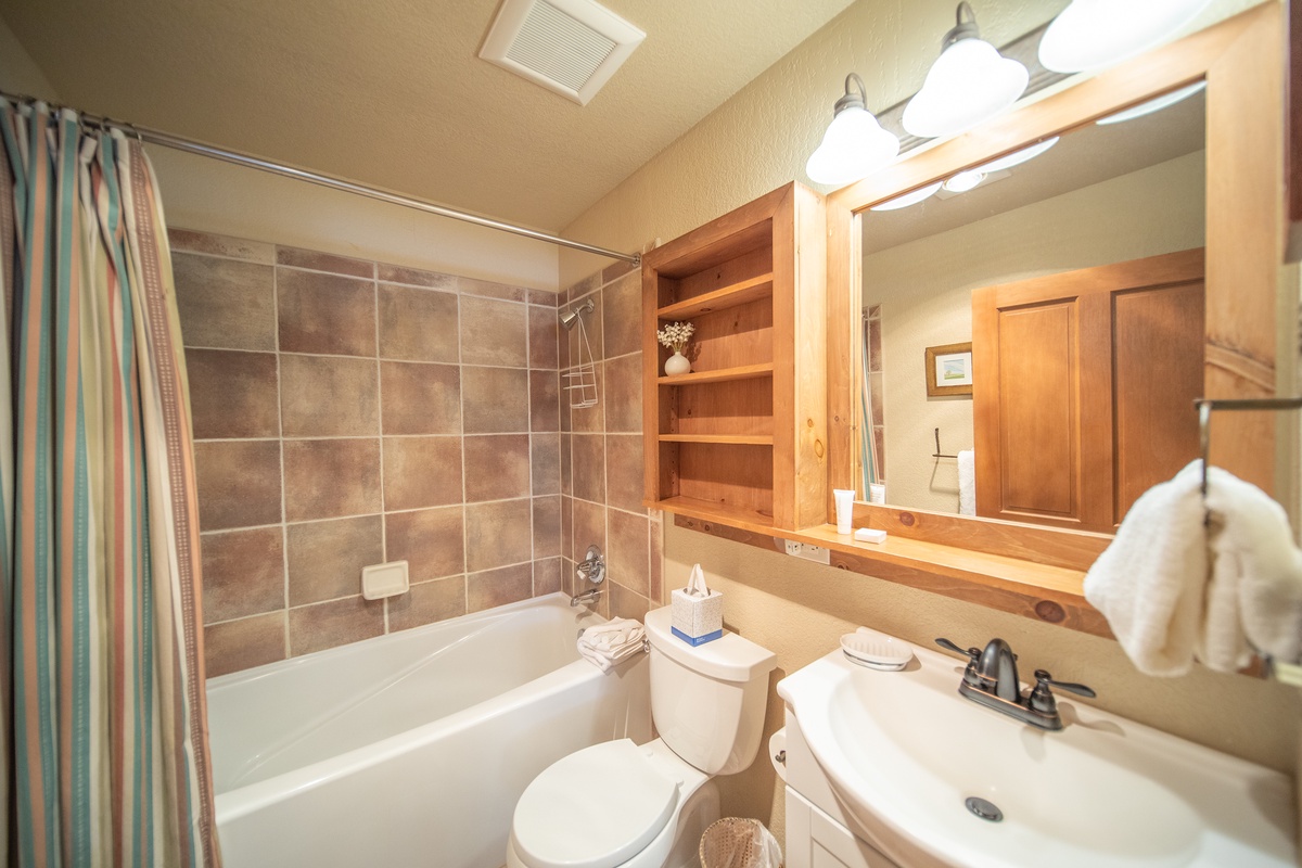 The two bedrooms, painted with a palette inspired by the natural beauty outside, are private sanctuaries designed for restful nights. Each room offers plenty of storage and high-quality linens to ensure maximum comfort throughout your stay. The two pristine bathrooms are equipped with all essential amenities, enabling you to freshen up in style after a day of adventure.
