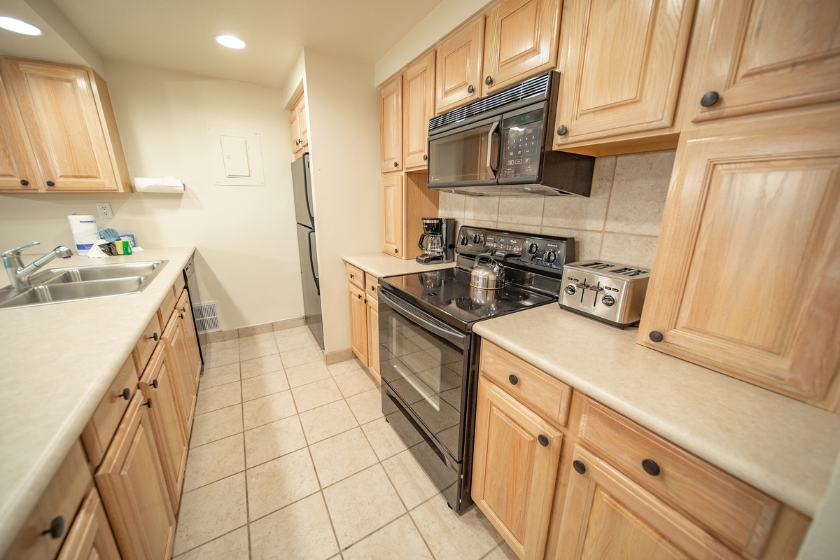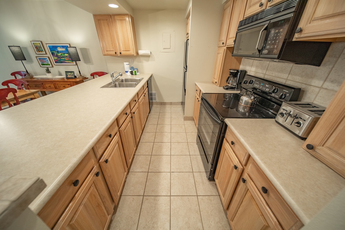 The fully-equipped kitchen boasts modern appliances, ample counter space, and generous storage, facilitating effortless meal preparation and entertaining. Whether you're indulging in a homemade breakfast before hitting the slopes or hosting a festive dinner with loved ones, this kitchen ensures an exceptional dining experience for all.