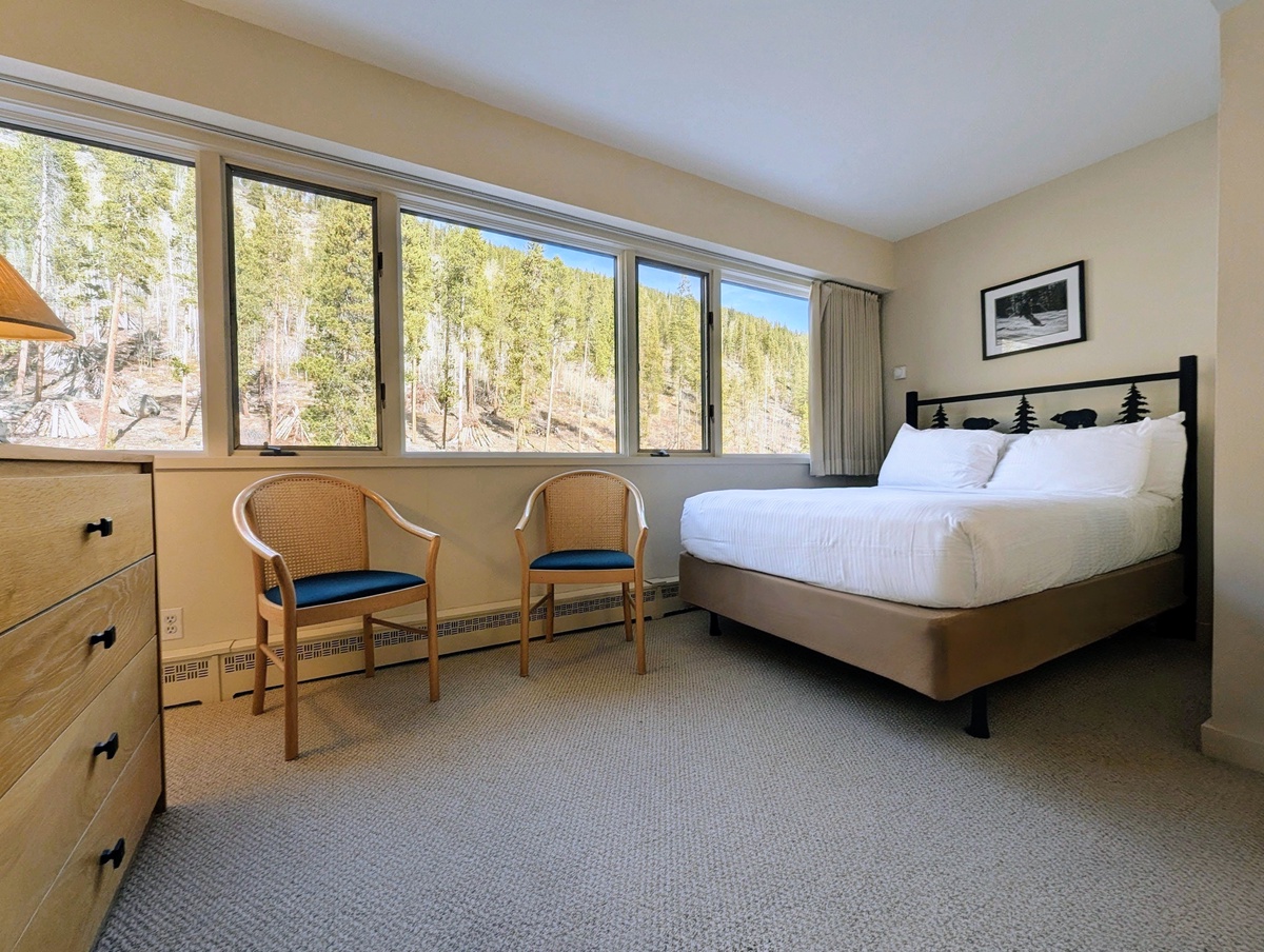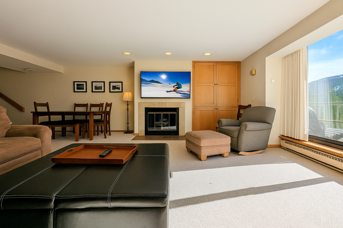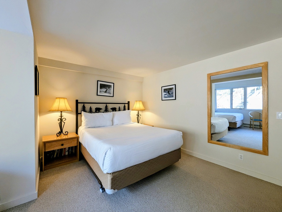 Each bedroom and bathroom in this condo has been thoughtfully designed to provide privacy and comfort. With three full bathrooms, there’s plenty of space for everyone to refresh and relax after outdoor adventures. The combination of stylish furnishings, cozy bedding, and elegant touches ensures that your stay feels both luxurious and welcoming. Whether you’re preparing for a day on the slopes or unwinding after an evening by the fire, every detail has been considered to enhance your mountain escape.