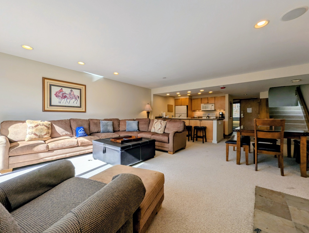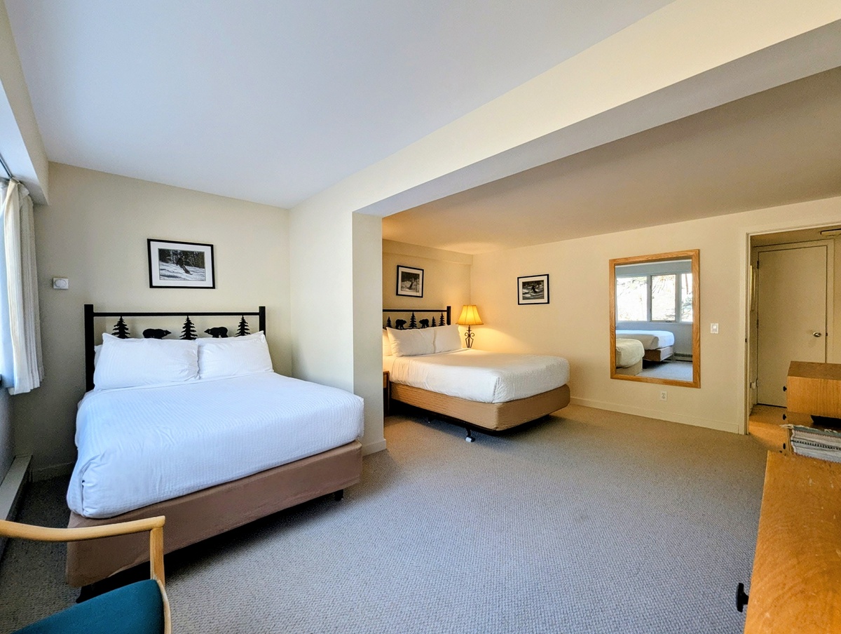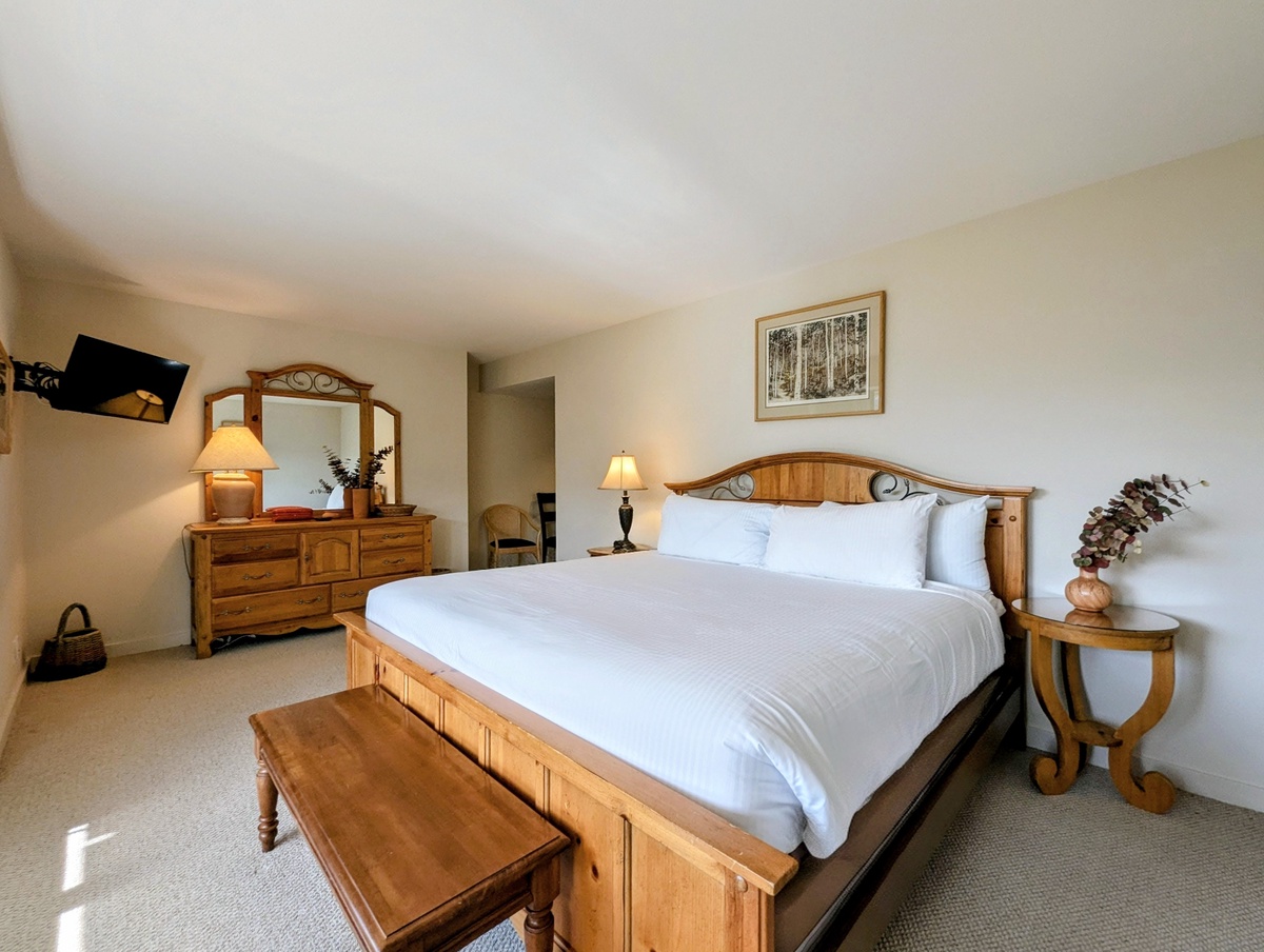 Each bedroom and bathroom in this condo has been thoughtfully designed to provide privacy and comfort. With three full bathrooms, there’s plenty of space for everyone to refresh and relax after outdoor adventures. The combination of stylish furnishings, cozy bedding, and elegant touches ensures that your stay feels both luxurious and welcoming. Whether you’re preparing for a day on the slopes or unwinding after an evening by the fire, every detail has been considered to enhance your mountain escape.