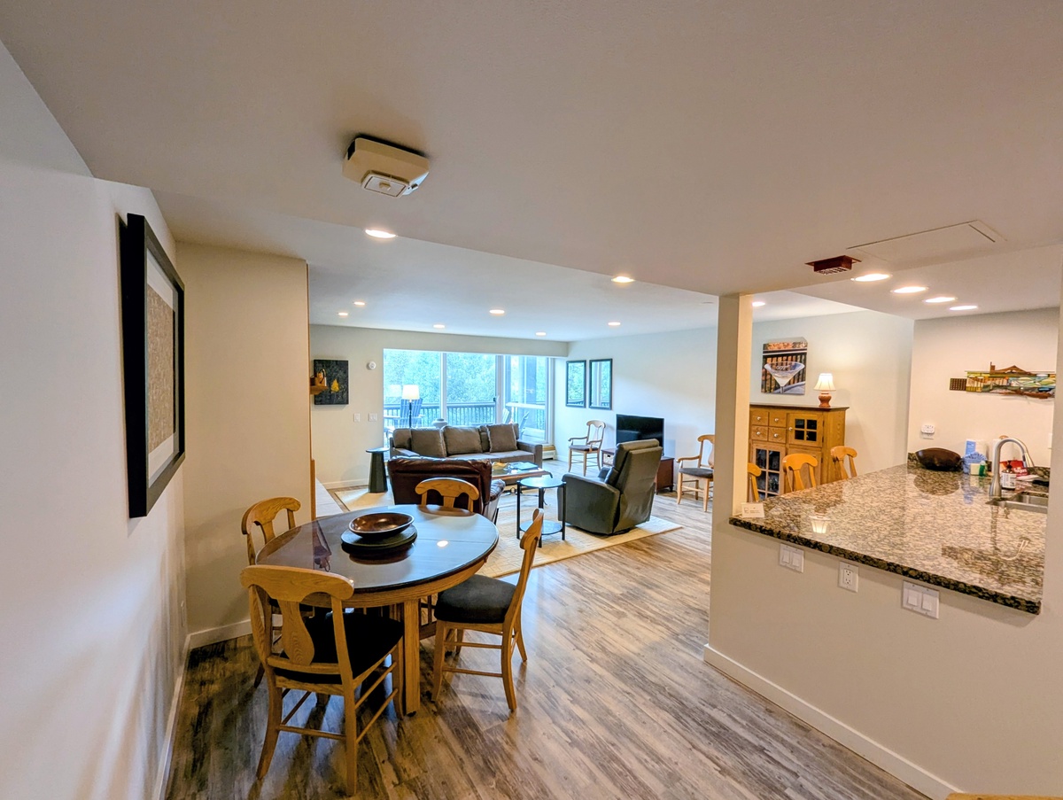The fully equipped kitchen makes it easy to whip up home-cooked meals, whether you’re fueling up before hitting the slopes or preparing a leisurely dinner to enjoy around the dining table. With plenty of counter space, updated appliances, and all the essentials, meal prep is a breeze. The open-concept layout ensures you’ll stay connected with family or friends while cooking, dining, or relaxing together.
