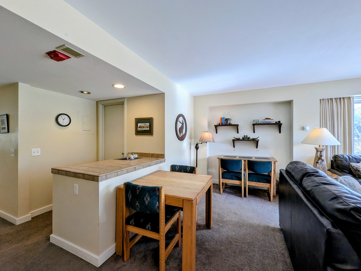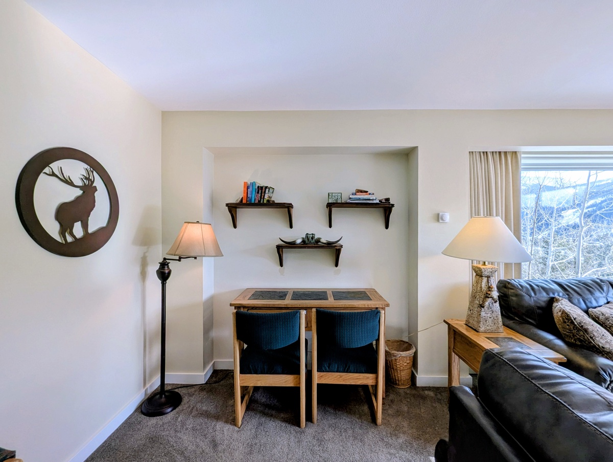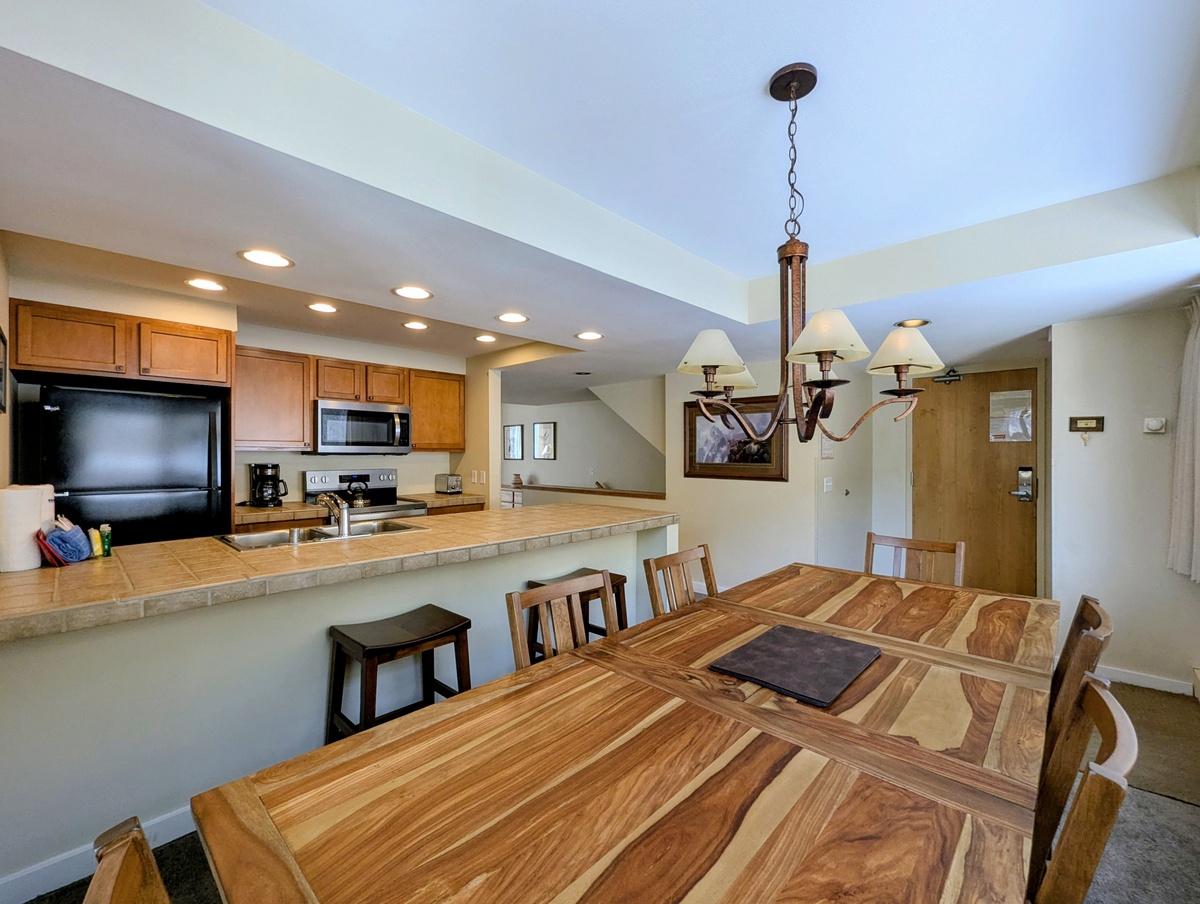 With a fully equipped kitchen, you will have everything you need to make your favorite meals. A nearby dining table provides a great place for family meals, games, or simply gathering with loved ones. With thoughtful finishes and tasteful mountain décor throughout, every detail is designed to make you feel right at home.