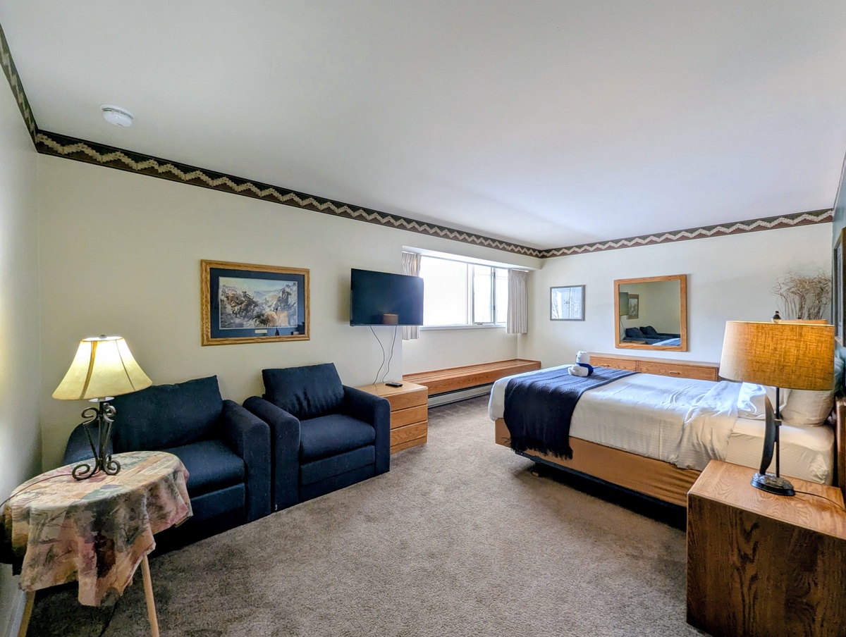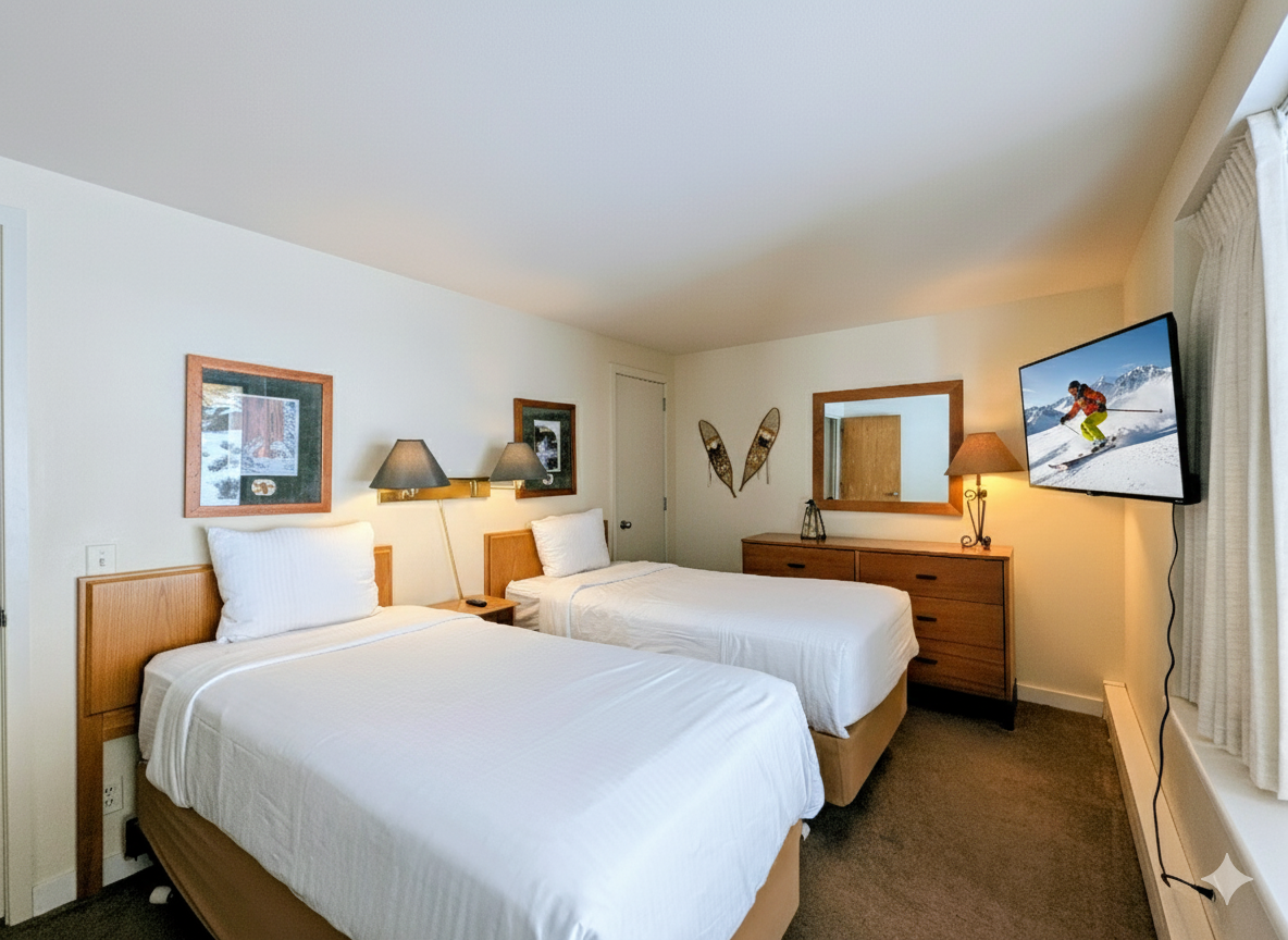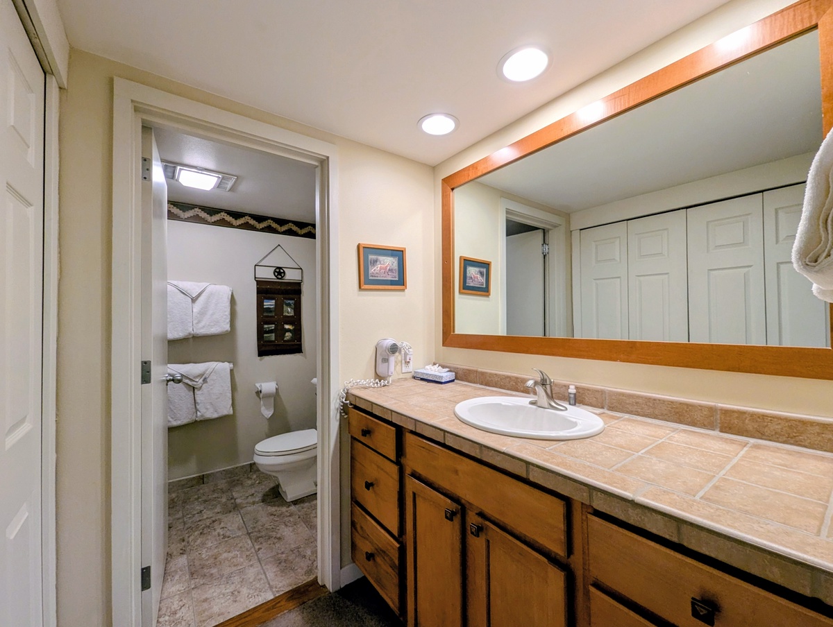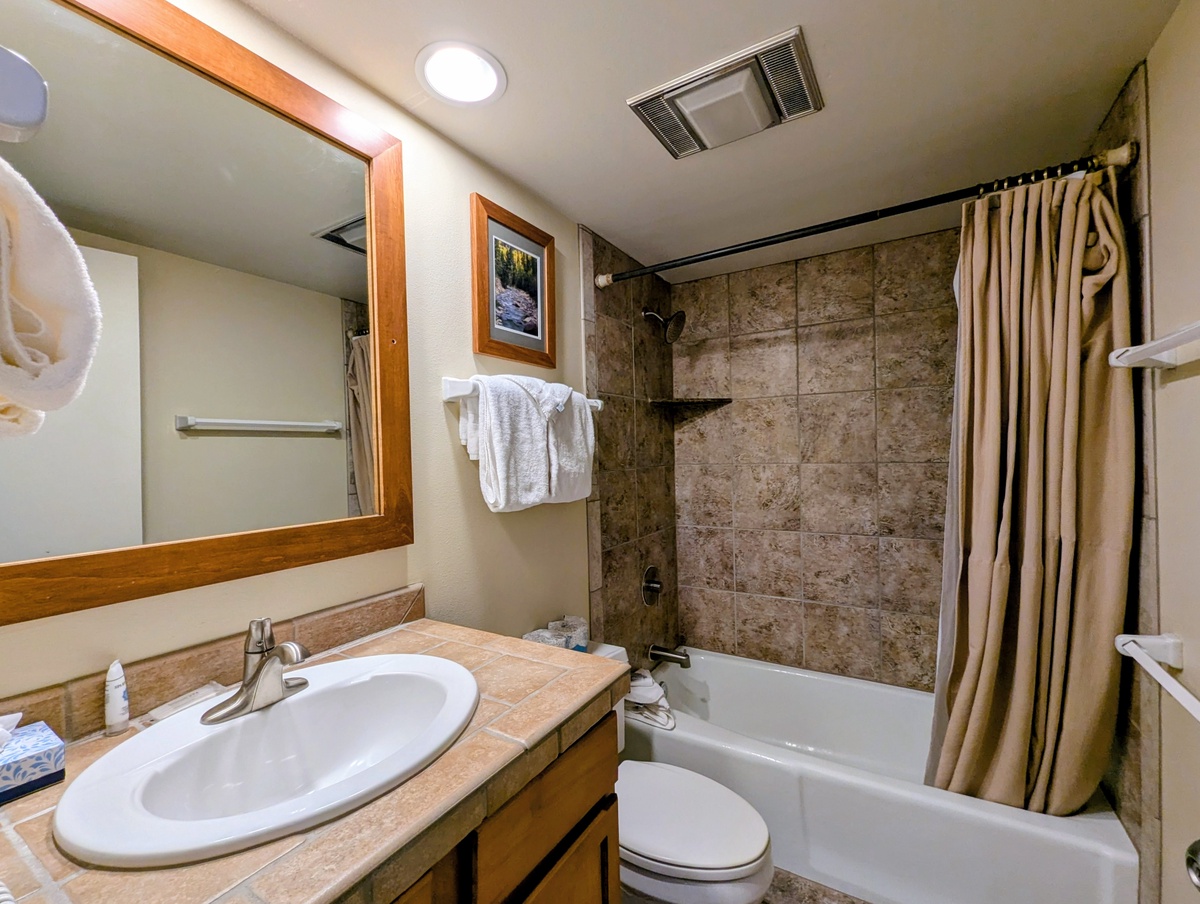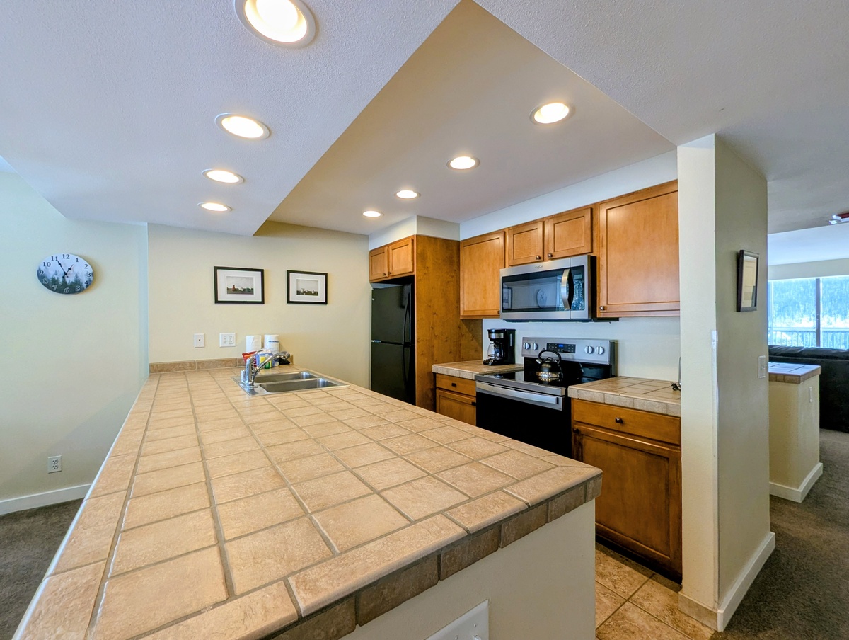 Each of the two bedrooms offers its own private retreat, and with three bathrooms, everyone in your group will have space to refresh and unwind. Whether you’re traveling with friends or family, the layout of this condo is ideal for both shared moments and personal downtime. Additional conveniences like in-unit laundry, and a ski-friendly storage in the building add to the comfort and functionality of your stay.