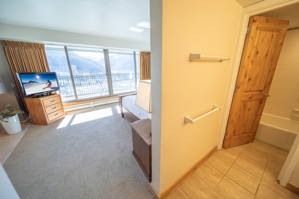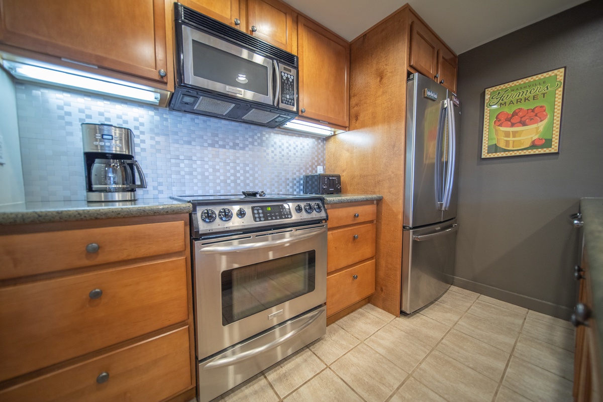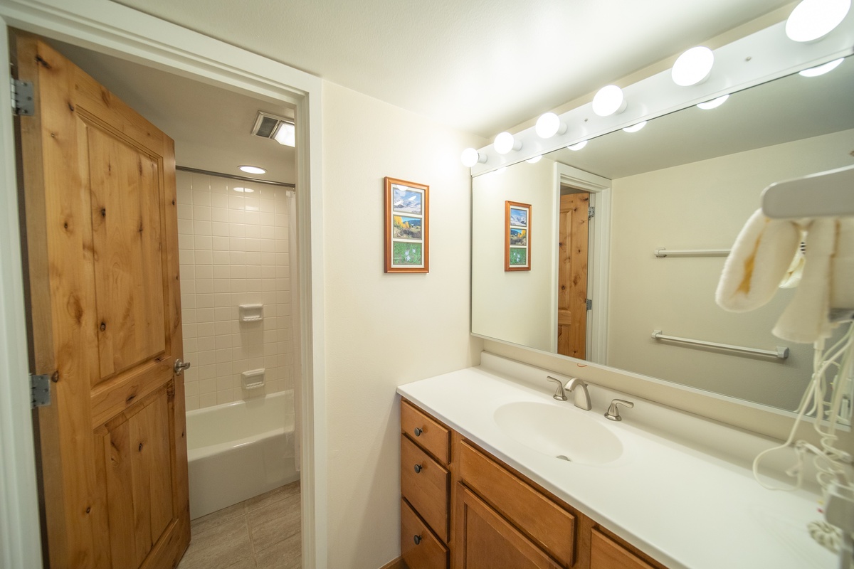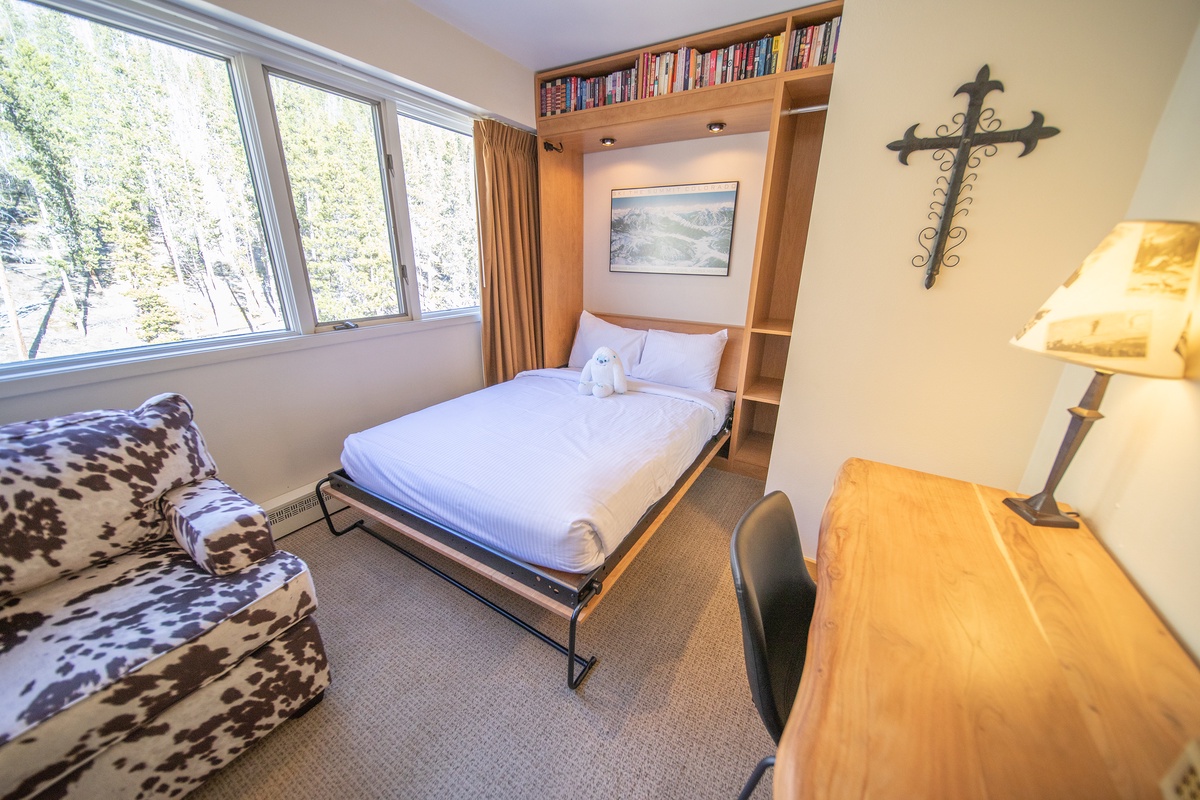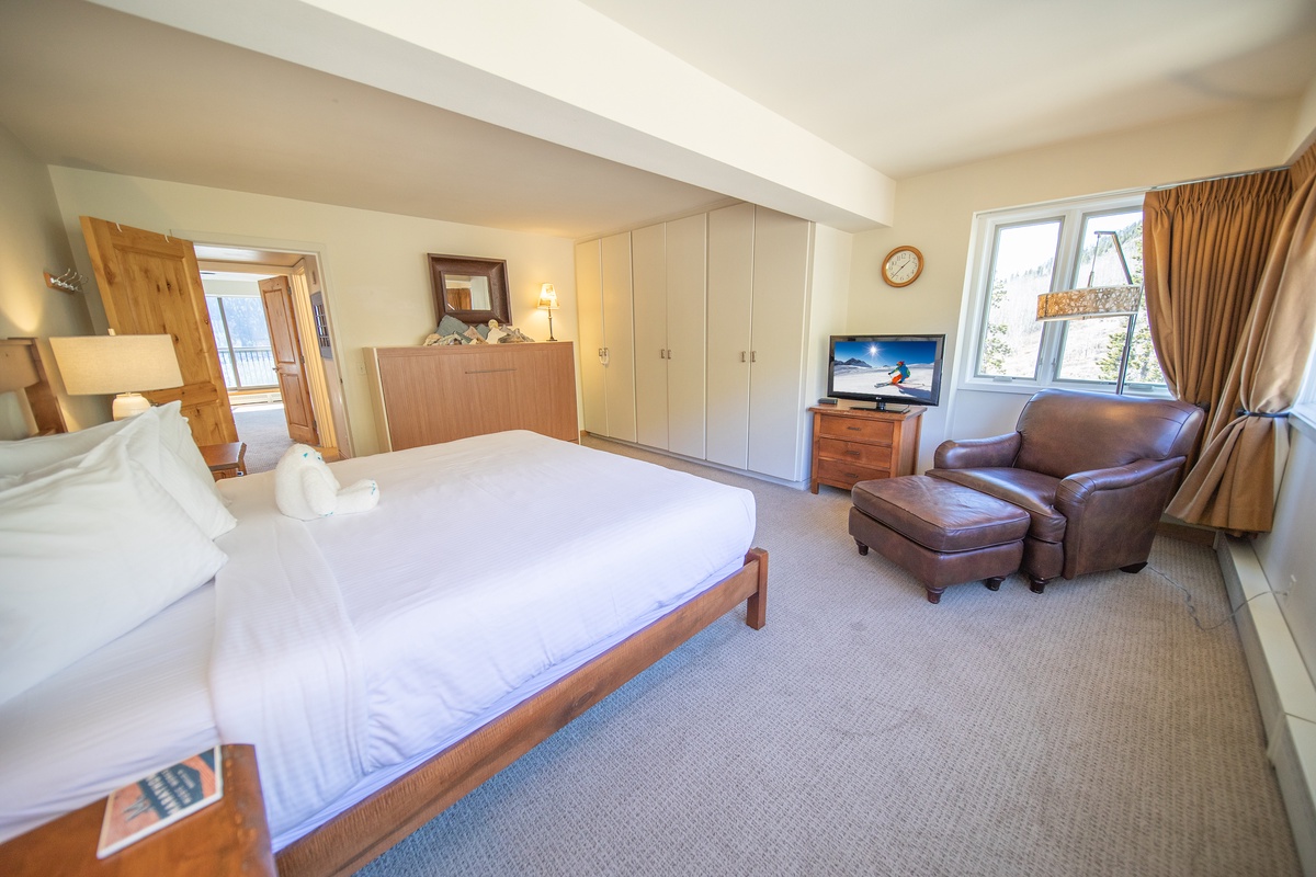 The Master bedroom is a highlight, featuring a private fireplace and balcony access, offering awe-inspiring views. The Guest bedroom also impresses with ample storage and sleeping arrangements for three. A Den/Bonus Room provides additional sleeping space and lounging area, ensuring plenty of room for your group to relax in this spacious vacation condo.